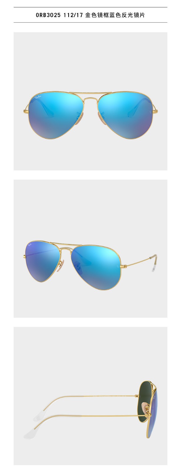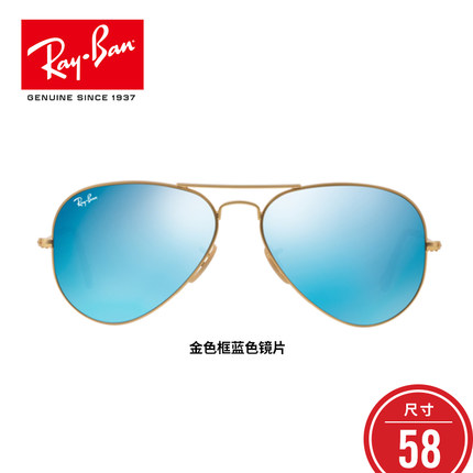 雷朋(Ray.Ban)太阳镜3025彩膜112/17-哑金/蓝膜