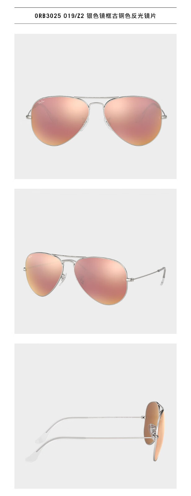 雷朋(Ray.Ban)太阳镜3025彩膜019/Z2-哑银/樱花粉膜