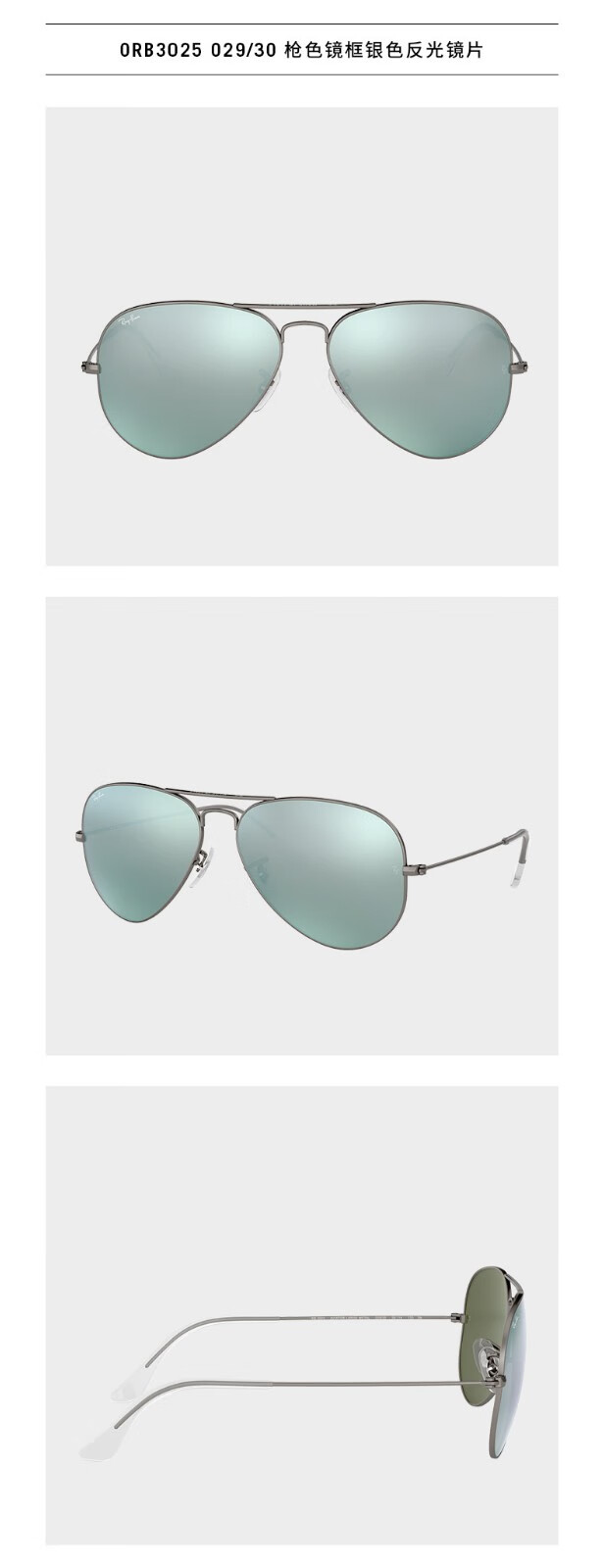 雷朋(Ray.Ban)太阳镜3025彩膜029/30-哑枪/白水银