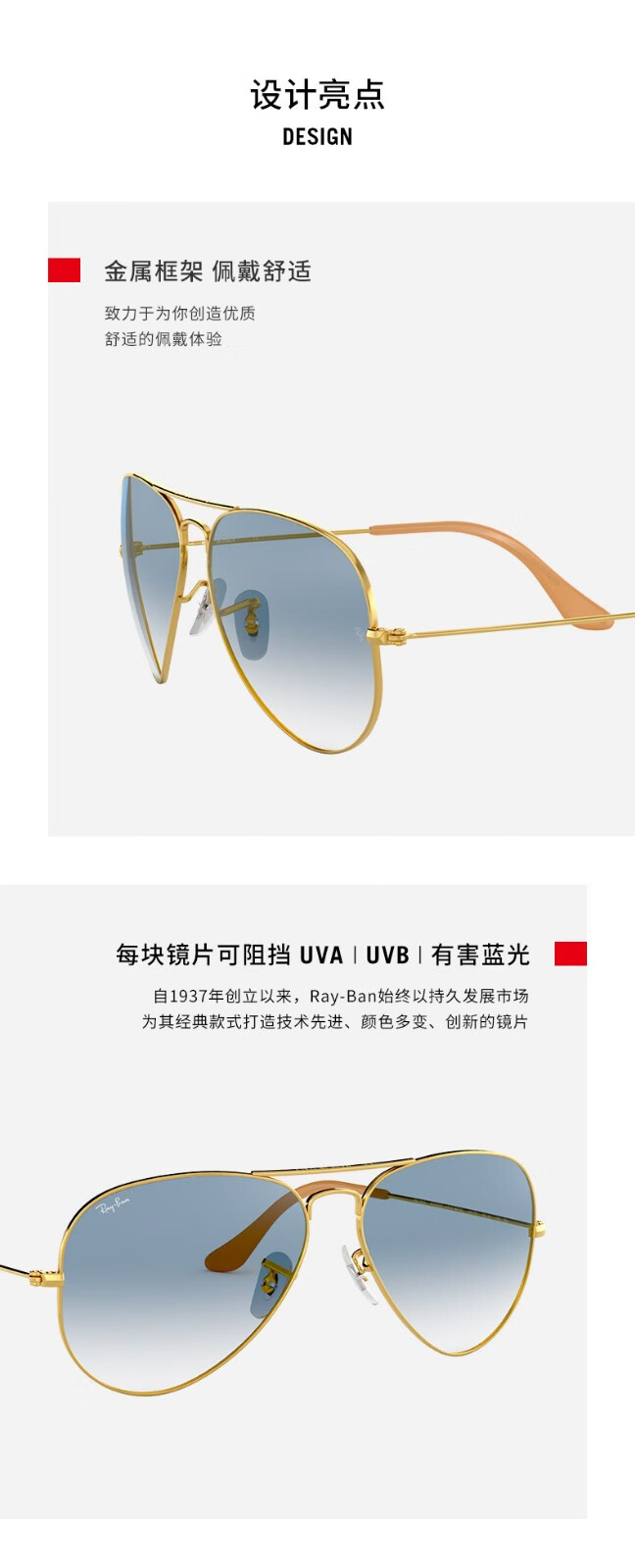 雷朋(Ray.Ban)太阳镜3025渐进001/51-光金/渐进茶