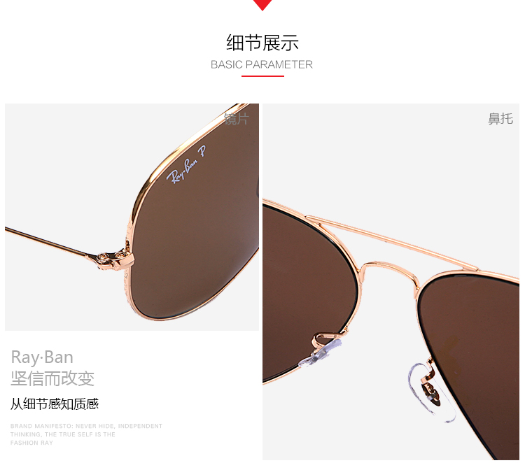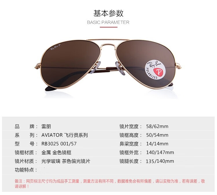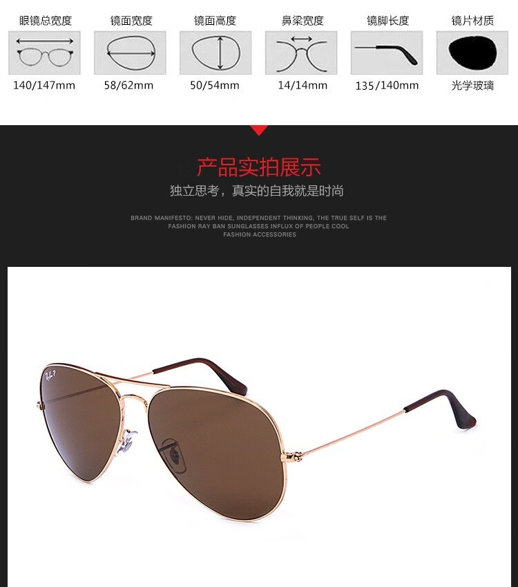 雷朋(Ray.Ban)太阳镜3025单色偏光001/57-光金/茶偏光