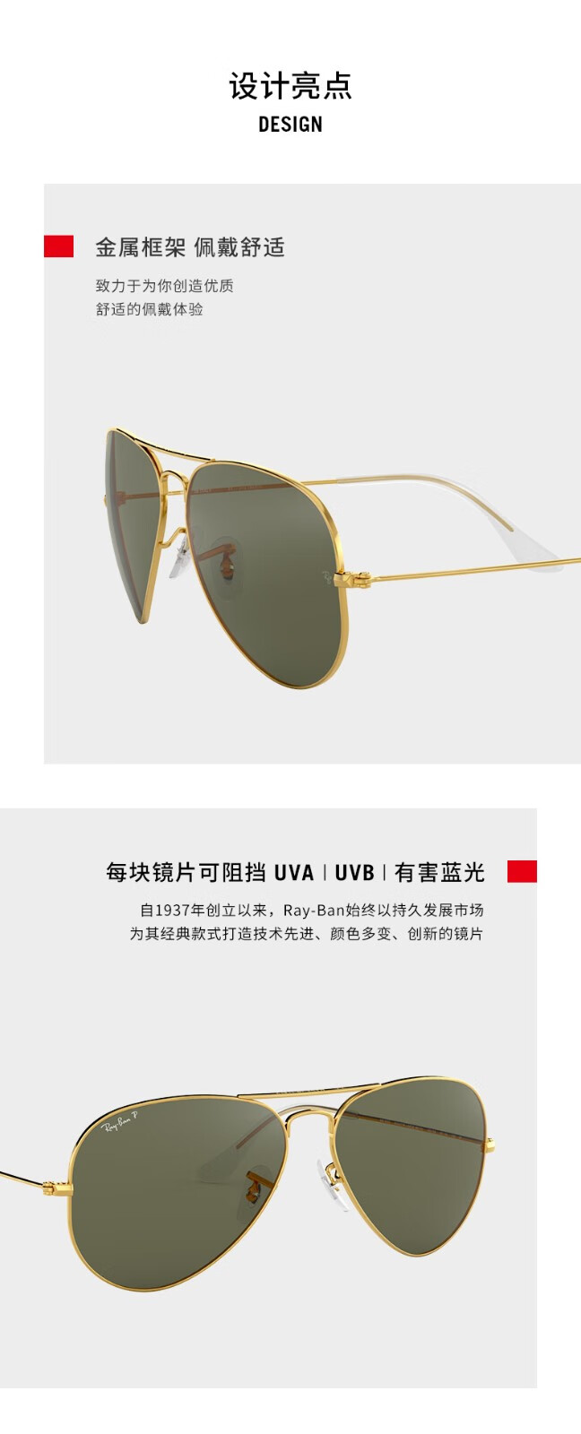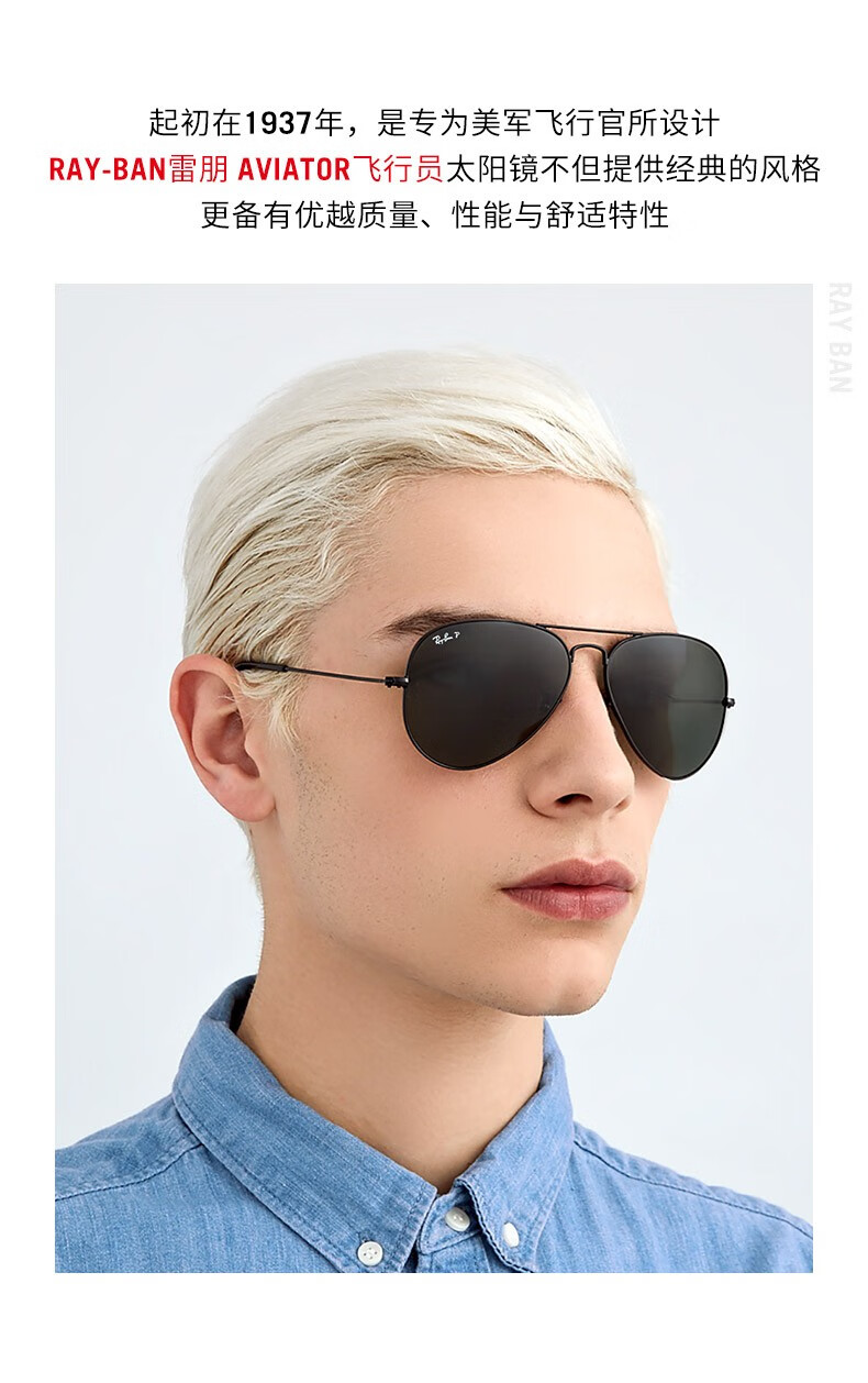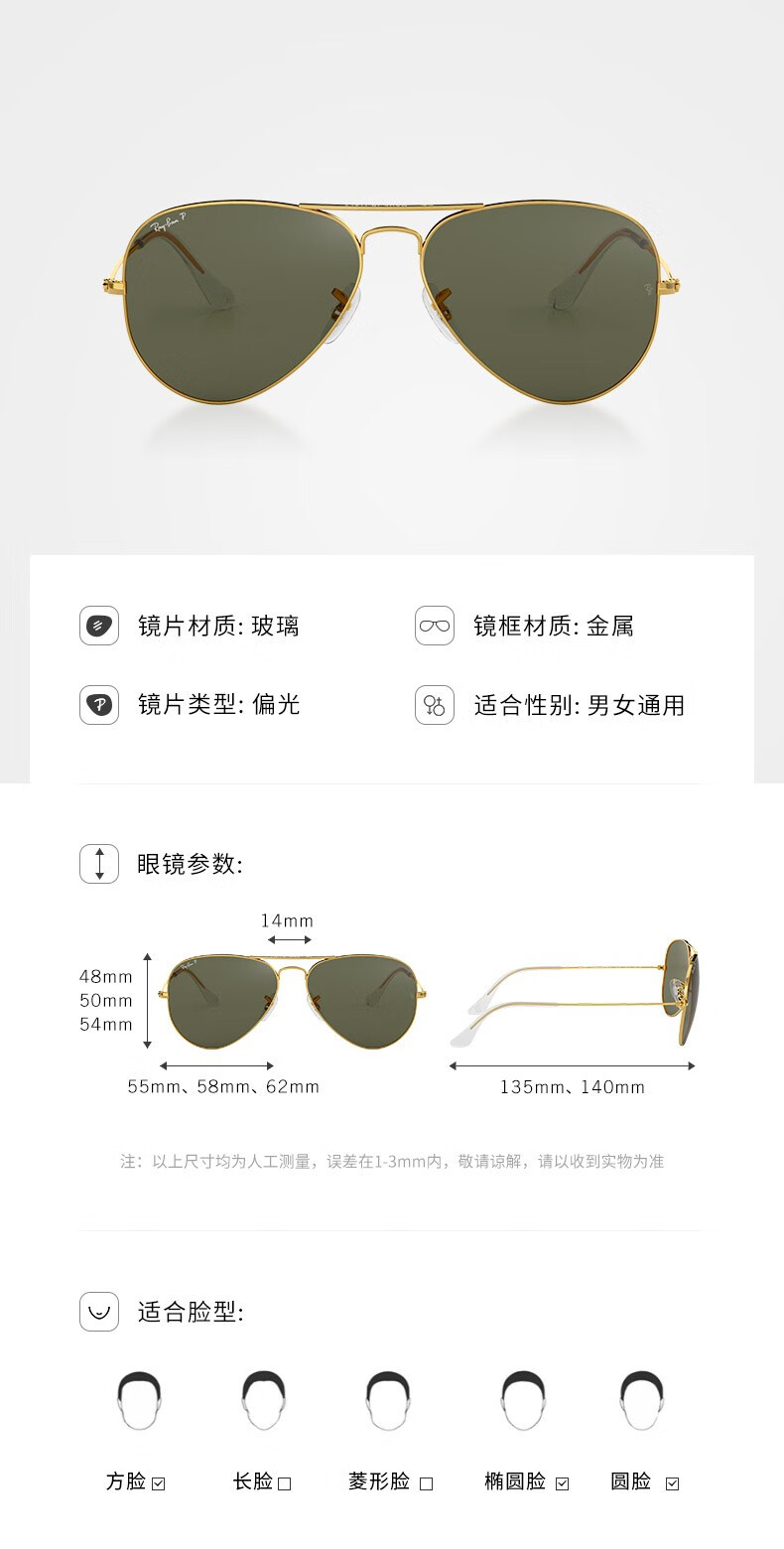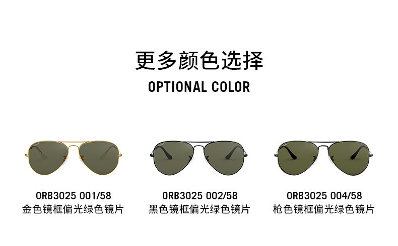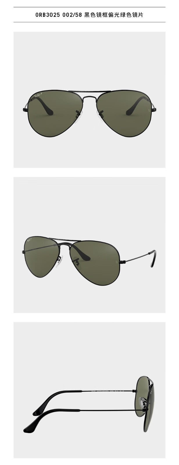 雷朋(Ray.Ban)太阳镜3025单色偏光002/58-光黑/G15偏光