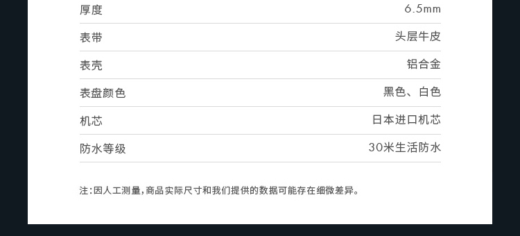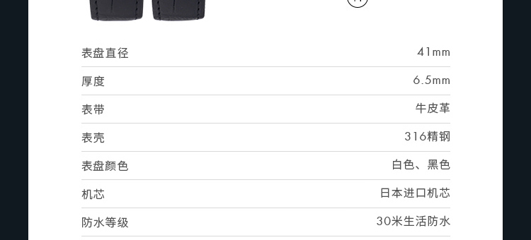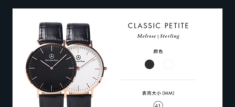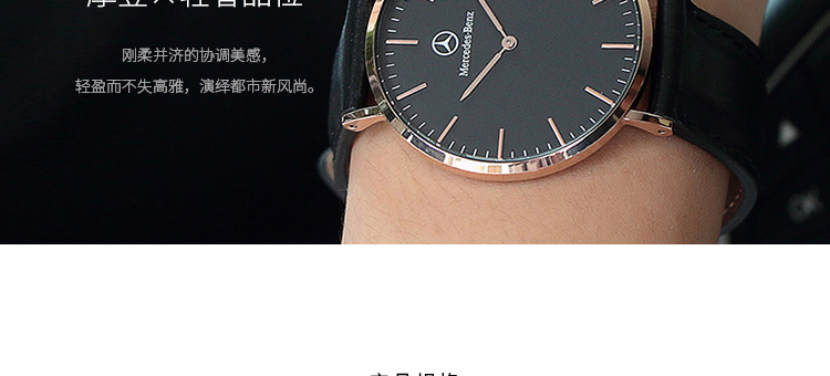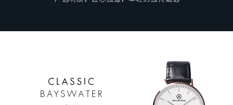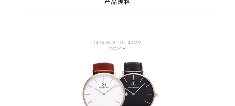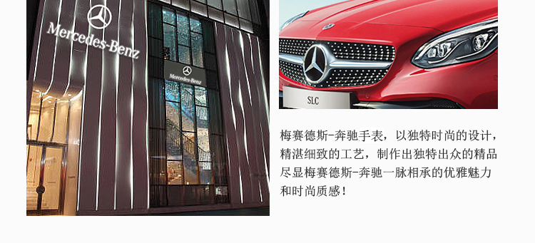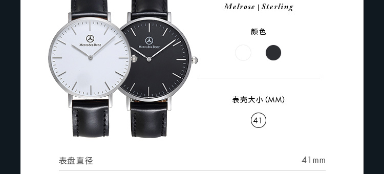 -手表品牌:梅赛德斯-奔驰 MERCEDES-BENZ -表盘直径:41mm -手表厚度: 6.5mm -手表表壳:铝合金 -表盘颜色:白色 -手表机芯:日本进口机芯 -防水等级: 30生活防水