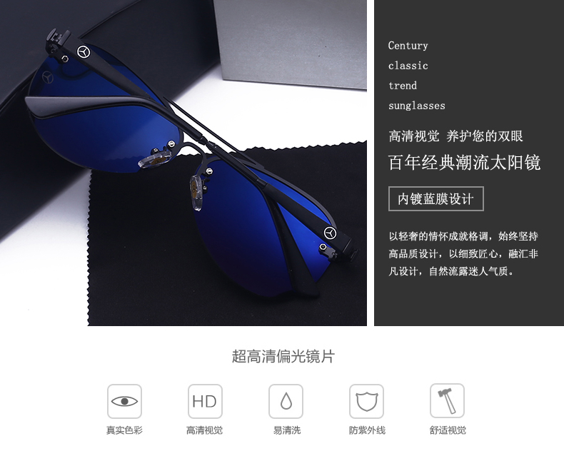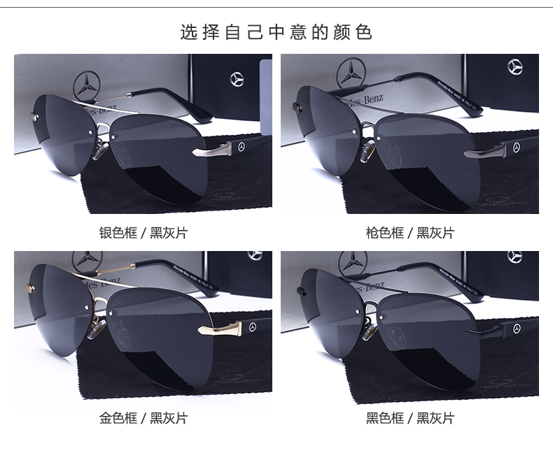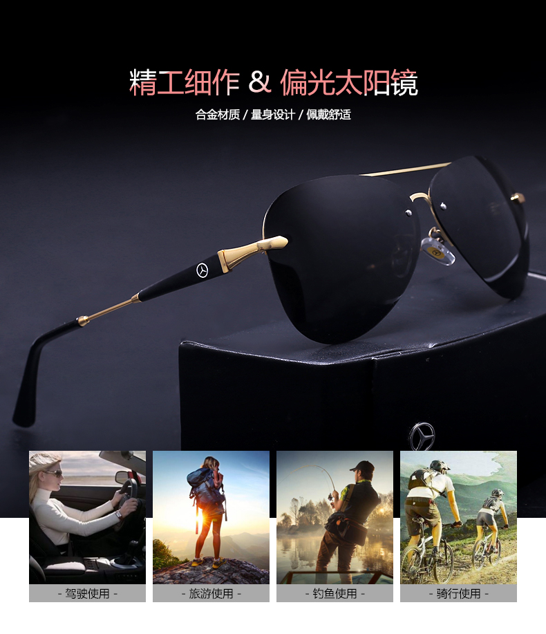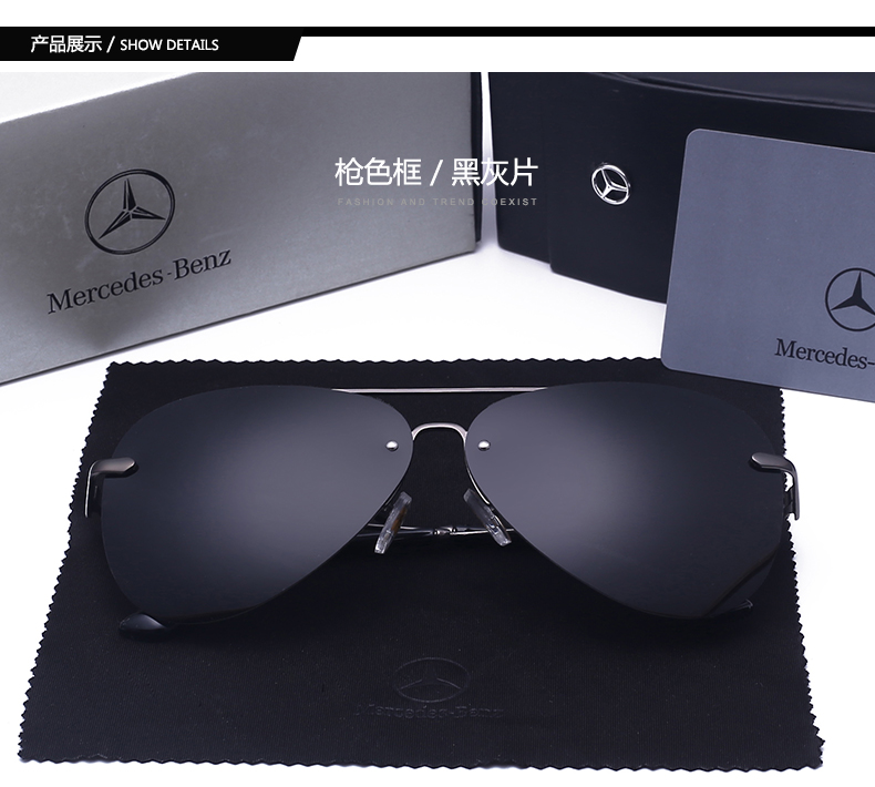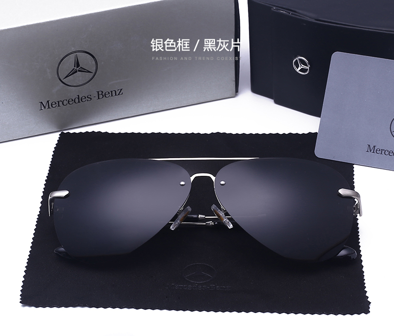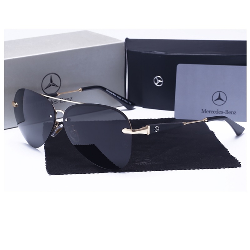 梅赛德斯-奔驰 MERCEDES-BENZ偏光太阳镜眼镜无框蛤蟆镜驾驶反刺眼热销礼盒装-金色框/黑灰片