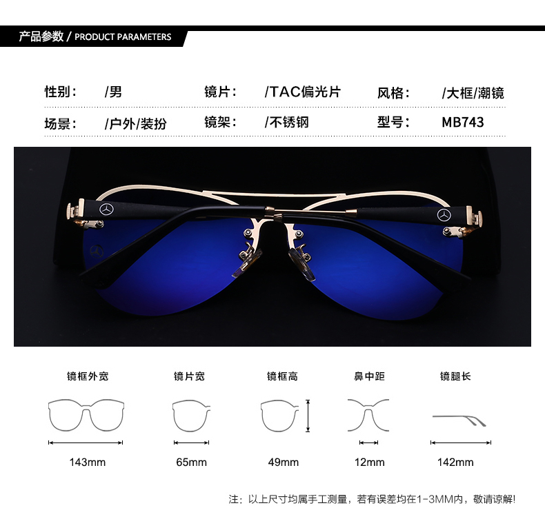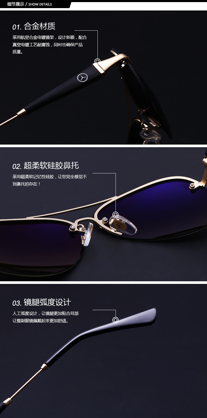 -商品品牌:梅赛德斯-奔驰 MERCEDES-BENZ -商品镜片:黑灰片 -商品风格:金色框 -商品场景:户外/装扮 -商品镜架:不锈钢
