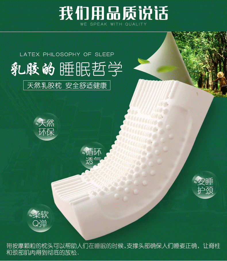 宜枫坊 泰国天然乳胶枕进口天然乳胶原液颈椎枕头-狼牙按摩款