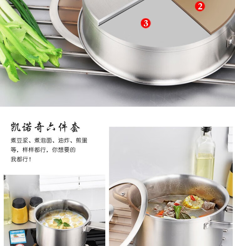• 商品毛重:4.95kg • 商品产地:中国大陆 • 商品型号:KNQ-106 • 组合规格:六件套及以上 • 商品材质:304不锈钢