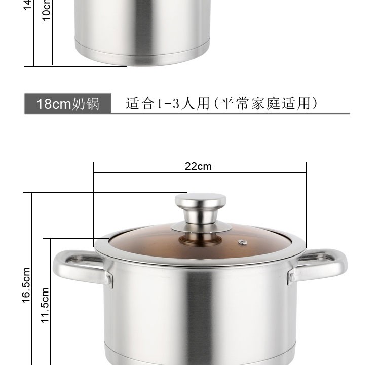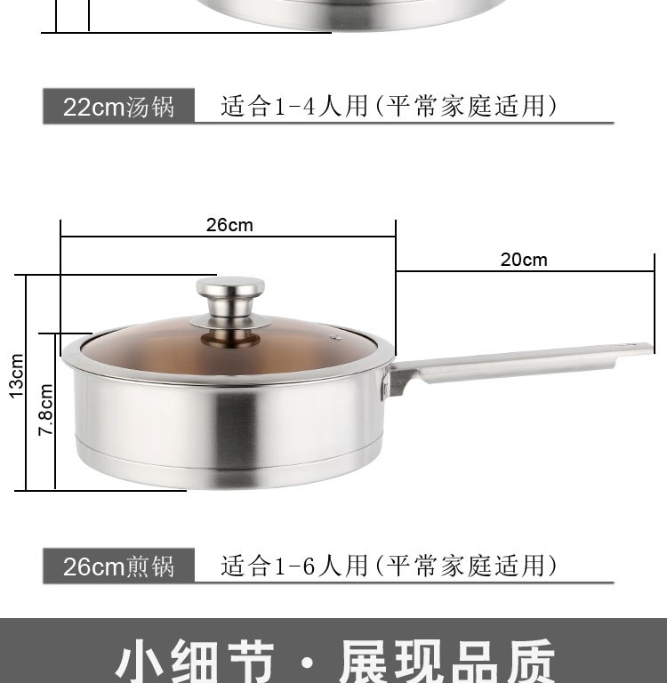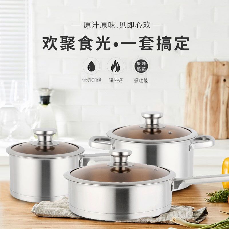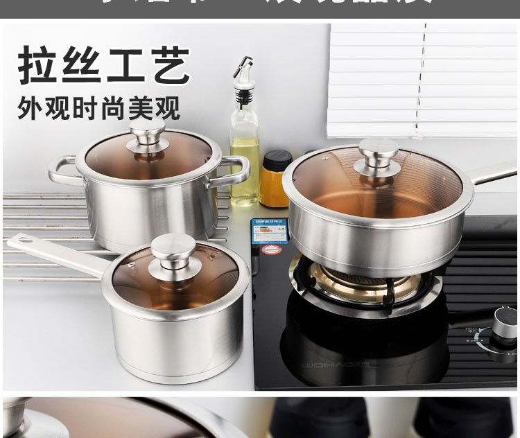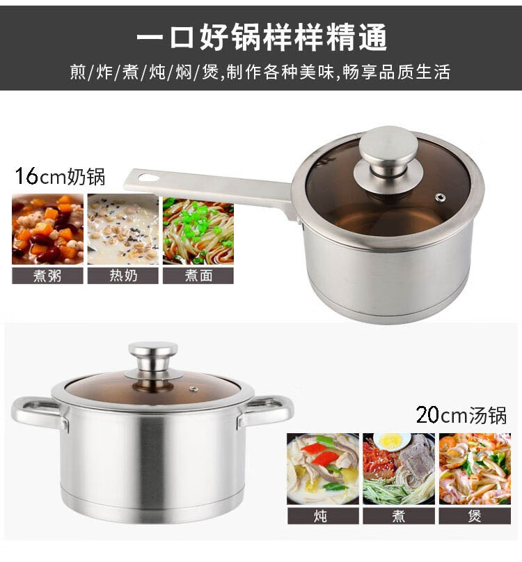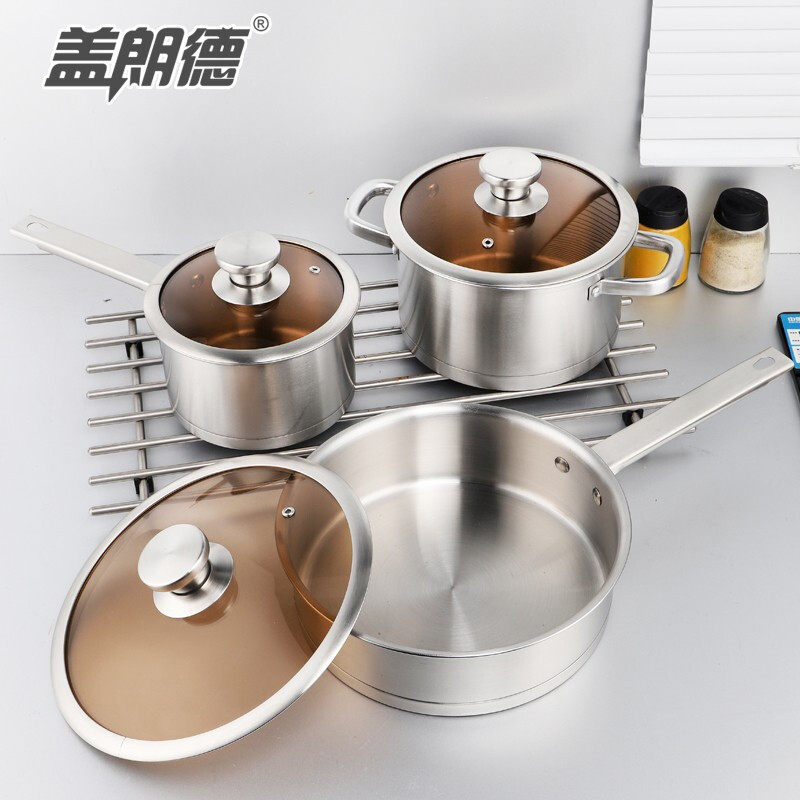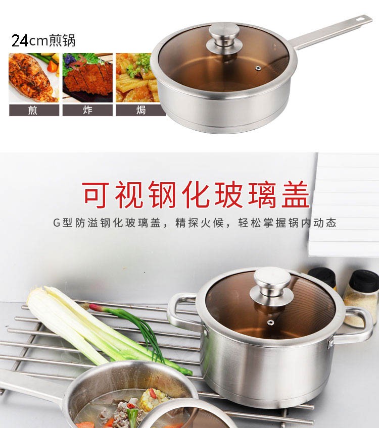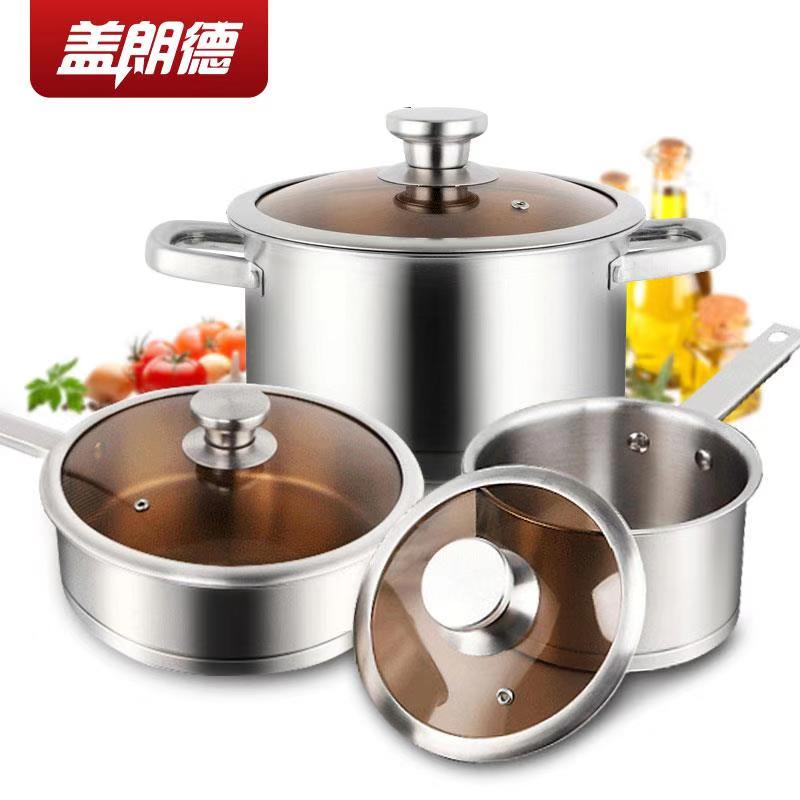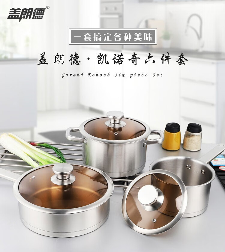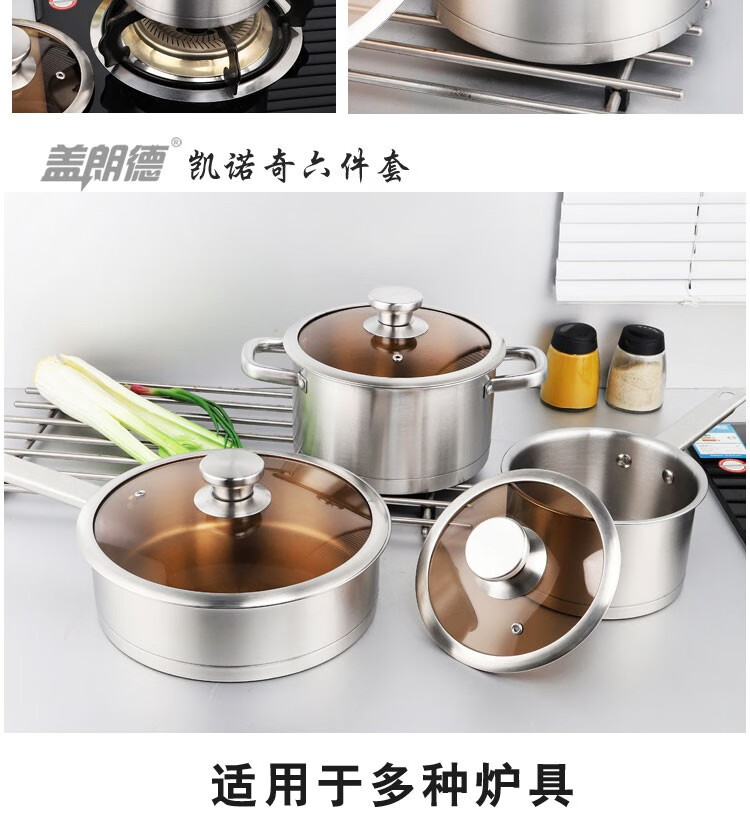 GLD盖朗德 凯诺奇304奥式体食品级不锈钢汤锅煎锅奶锅套装锅六件套
