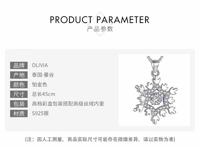 OLIVIA奥利薇亞 元素跳舞石头项链雪花女简约/珠宝饰品首饰礼品