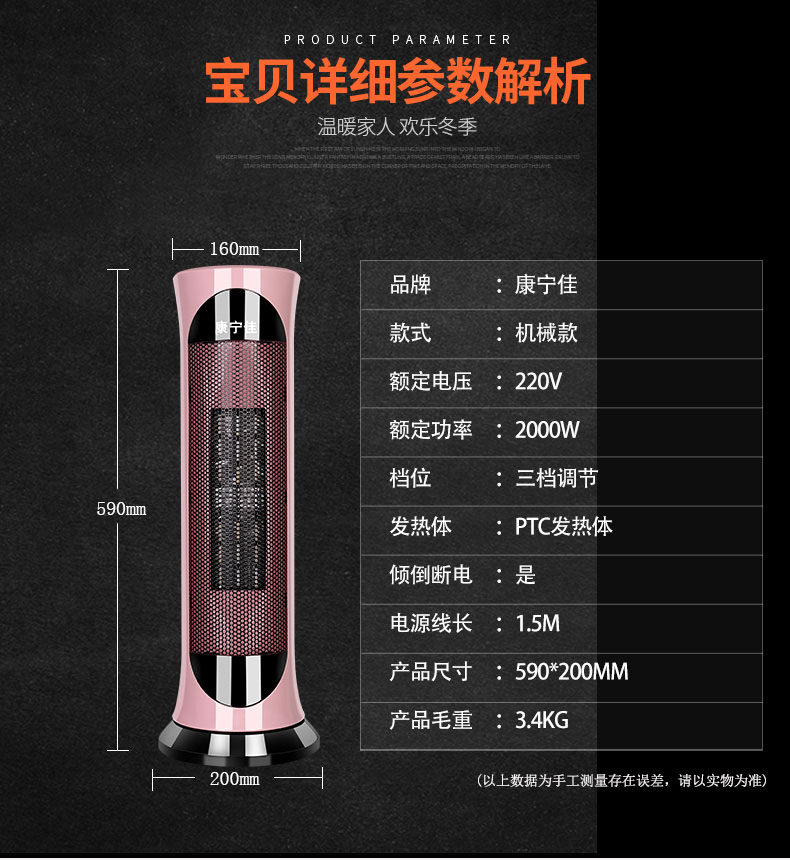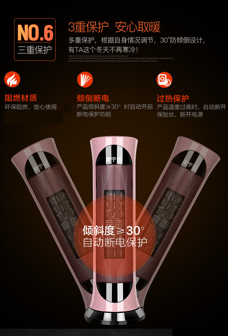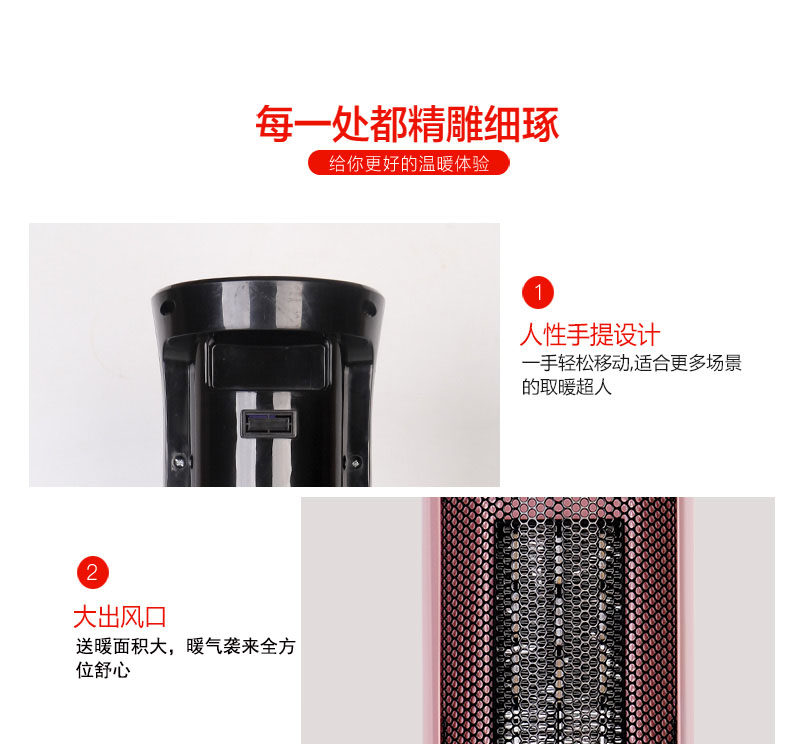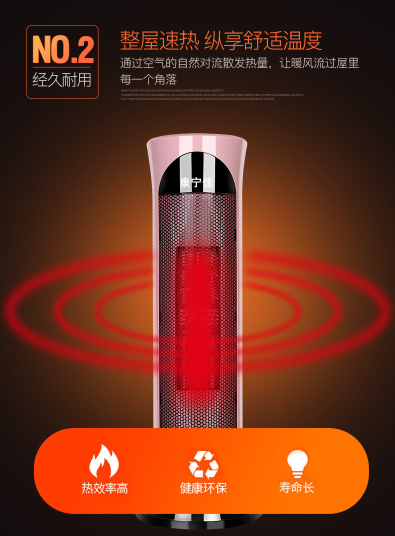 • 商品品牌:康宁佳 • 适用面积: 11m^2 (含)-20m^2 (含) • 电暖器最大功率: 2000W • 面积(平方米): 20m^2以下 • 控制方式: 机械式 • 取暖器加热方式: 陶瓷加热 • 智能类型: 不支持智能