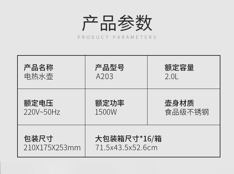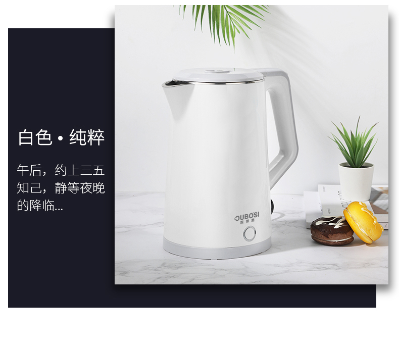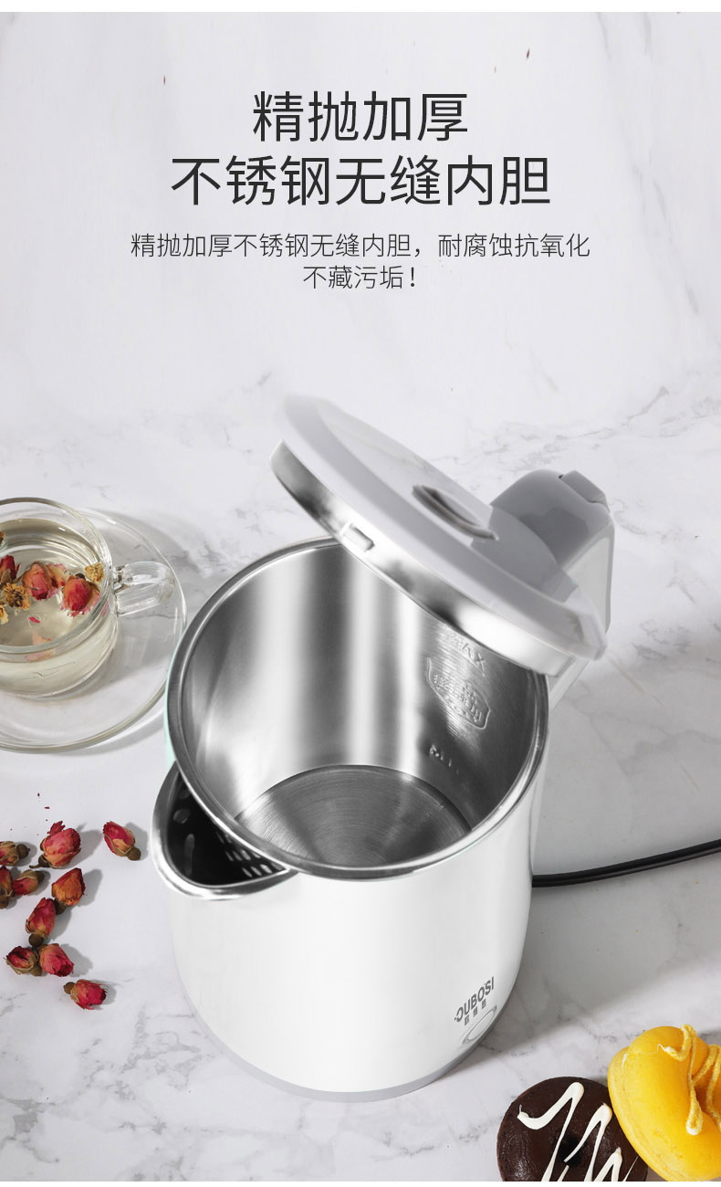 • 商品品牌: 欧博思(OUBOSI) • 商品颜色:白色 • 水壶材质:不锈钢 • 适用人数:2-4人 • 特色功能:自动断电 • 温控器类型:国产温控器 • 加热方式:底盘加热