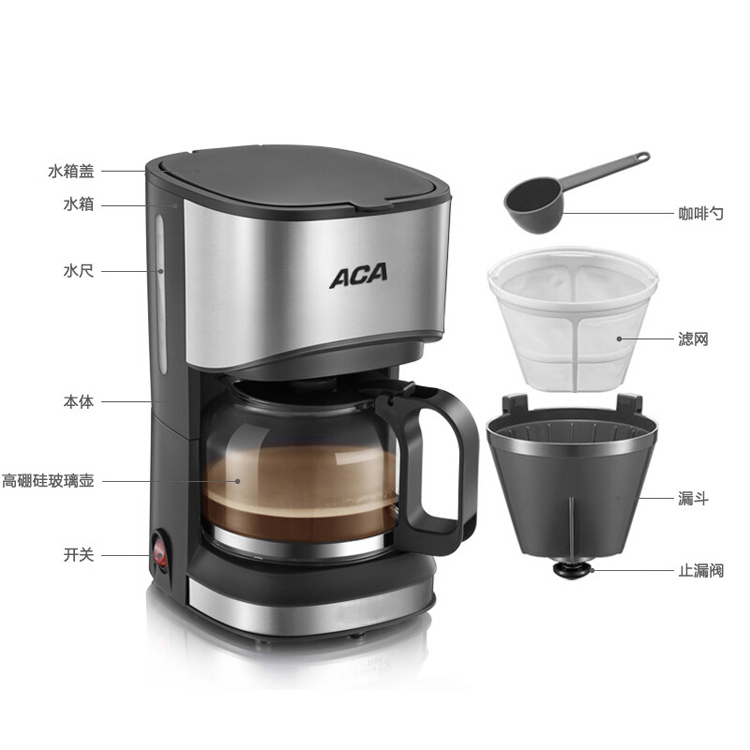 • Brand: ACA • Gross weight: 1.1kg • Model No.: ALY-KF070D • Make flavor: American coffee, fancy curry, milk bubble • Product category: American drip filter • Scenario: Home, Office