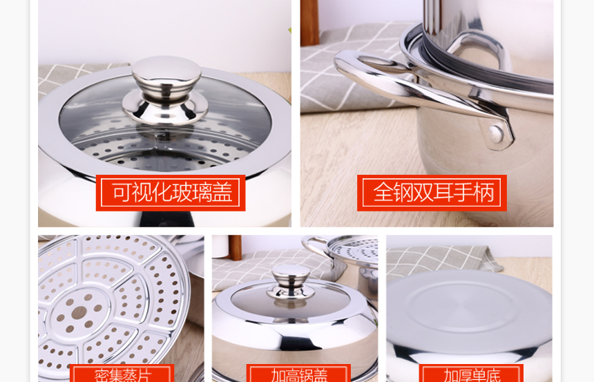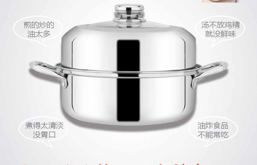 • 商品毛重:2.5kg • 商品直径:28cm • 商品材质:不锈钢 • 锅底类型:单底