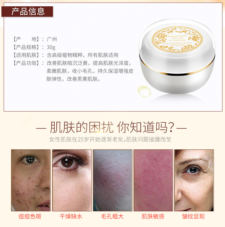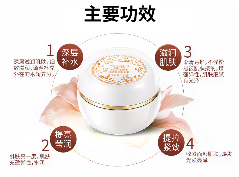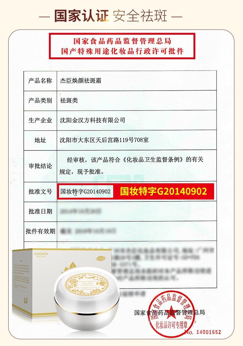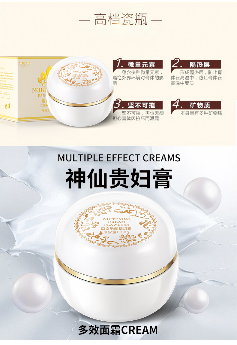 -商品品牌:AUDALA -商品功效:美白,提拉紧致,细致毛孔,淡斑 -适用人群:成人 -商品类别:面霜 -适合肤质:任何肤质 -商品规格:30g/ml -商品产地:中国大陆 -国产/进口:国产