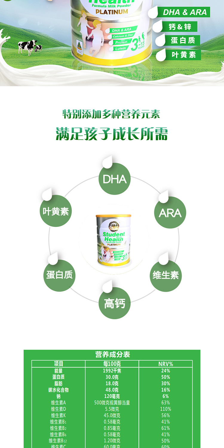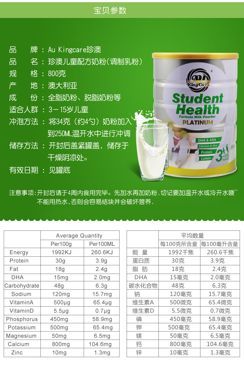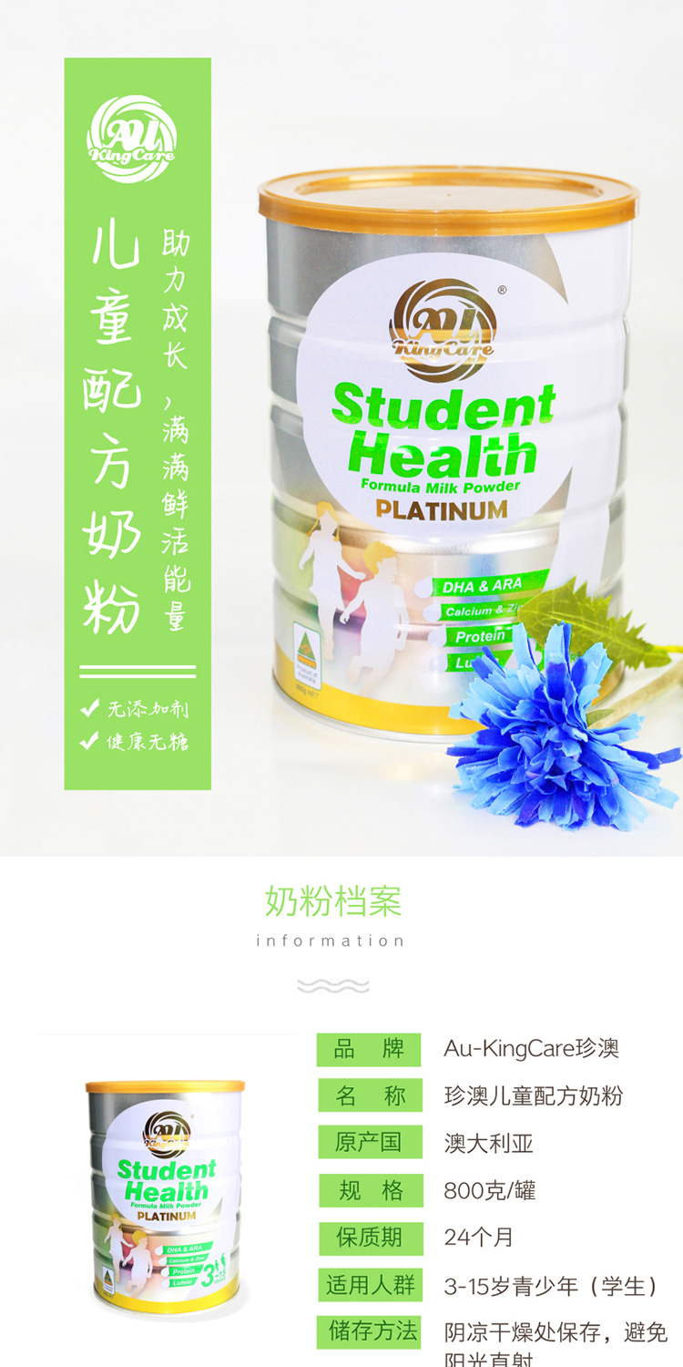 -Product Brand: Au Kingcare -Product gross weight: 1.0kg -Features: high calcium -Applicable crowd: students