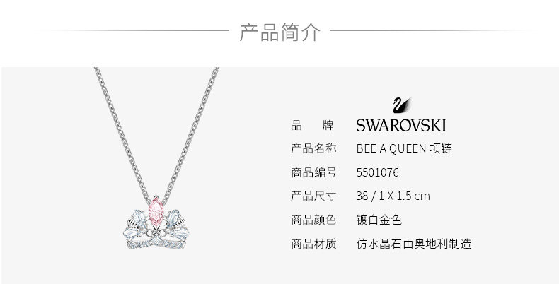 • 链子品牌:Swarovski/施华洛世奇 • 链子材质: 合金/镀银/镀金 • 适用性别: 女 • 是否多层: 否 • 是否带坠: 是 • 链子型号: 5501076