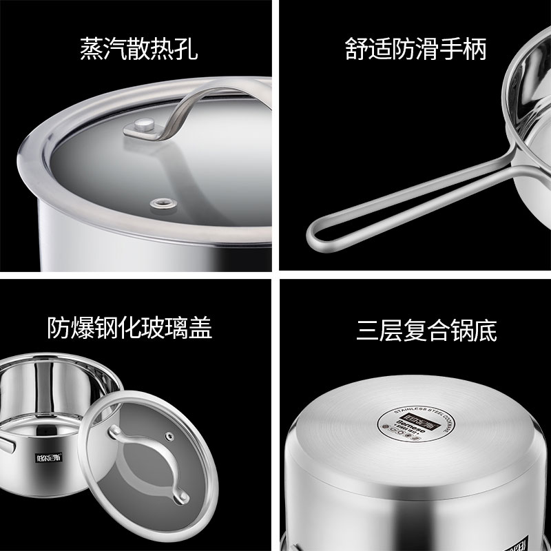 • 商品品牌:伯尔尼斯(BERNESE) • 商品型号:BENS-299 • 商品毛重:0.725kg • 商品产地:中国大陆 • 商品直径:16cm • 商品材质:不锈钢 • 锅底类型:复底