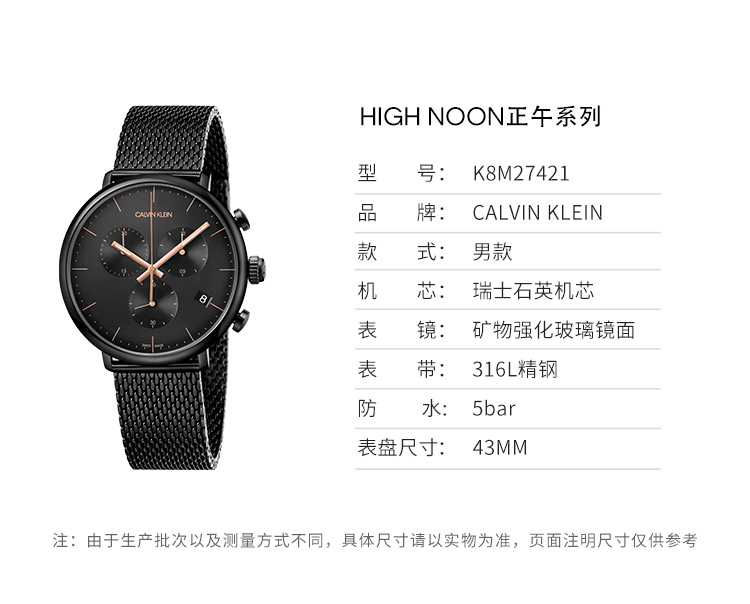· 手表品牌:卡文克莱CALVIN KLEIN (CK)