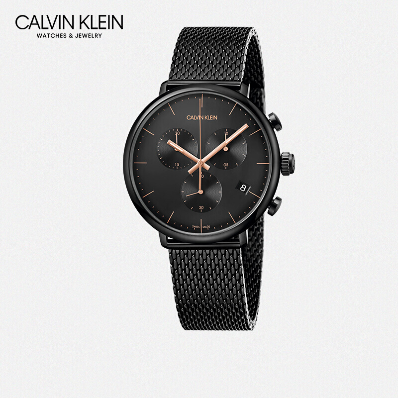 卡文克莱CALVIN KLEIN HIGH NOON正午系列石英男表 K8M27421-三眼计时米兰编织袋黑色