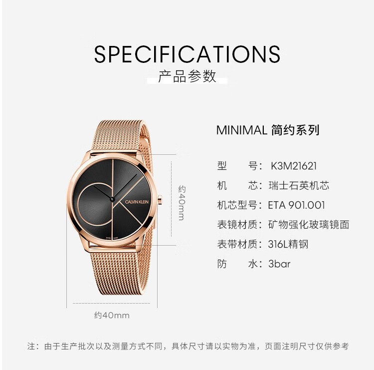 · 手表品牌:卡文克莱CALVIN KLEIN (CK) · 手表系列:MINIMAL简约系列 · 手表型号:K3M21621 · 手表毛重:420.00g · 手表表扣:折叠扣 · 手表表带:不锈钢 · 手表表盘:圆形 · 手表功能:其它 · 手表机芯:石英 · 适用人群:中性 · 手表表径:36-40mm · 手表风格:时尚 · 防水等级:生活防水 · 手表表壳:不锈钢