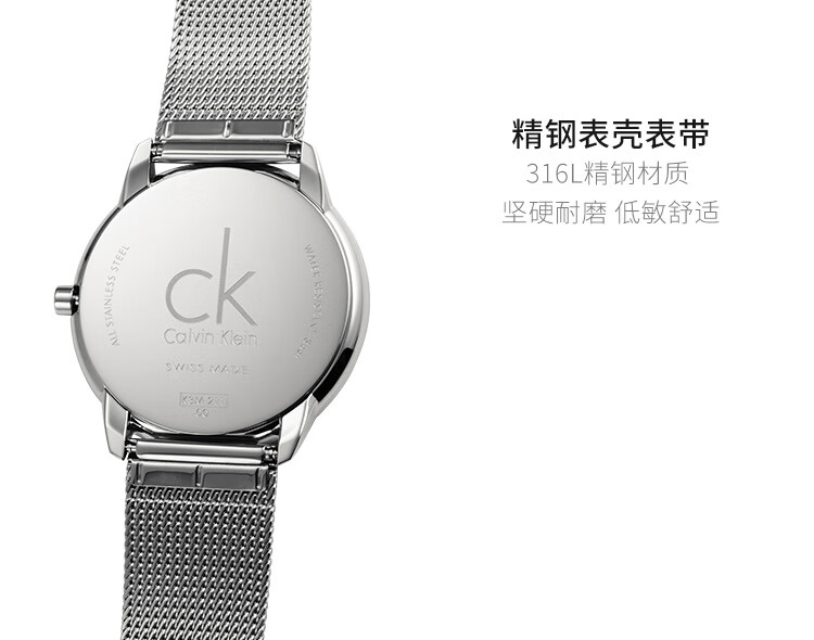 卡文克莱CALVIN KLEIN MINIMAL简约系列男女表K3M2112N-米兰钢带石英表