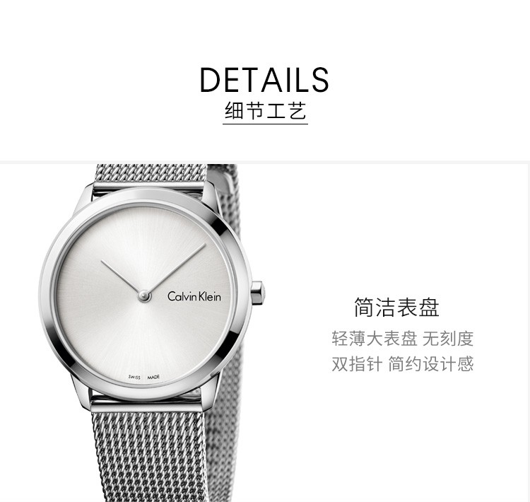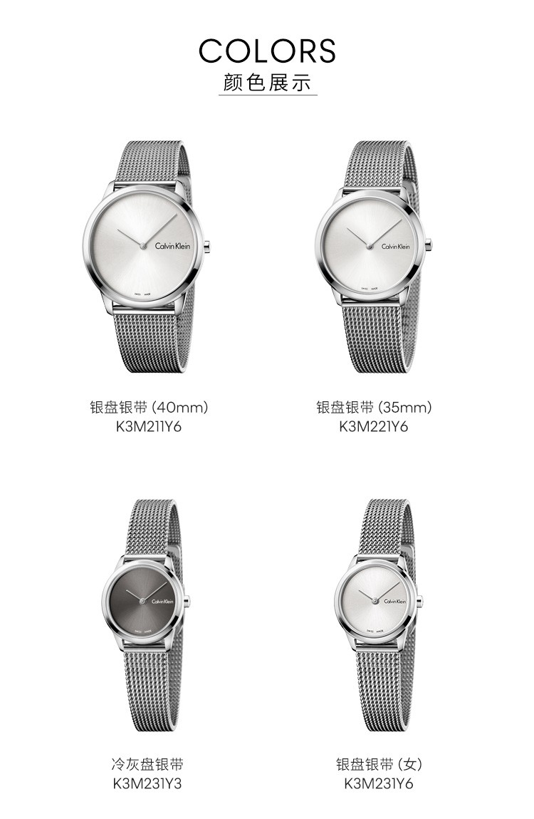 · 手表品牌:卡文克莱CALVIN KLEIN (CK) · 手表系列:MINIMAL简约系列 · 手表型号:K3M221Y6 · 手表毛重:390.00g · 手表机芯:石英 · 适用人群:中性 · 手表风格:休闲风,时尚,极简,其它 · 手表防水:30米 · 手表表带:不锈钢 · 手表功能:其它
