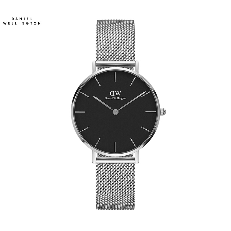 DanielWellington丹尼尔惠灵顿DW 32mm银边简约黑盘金属表带欧美女表DW00100162