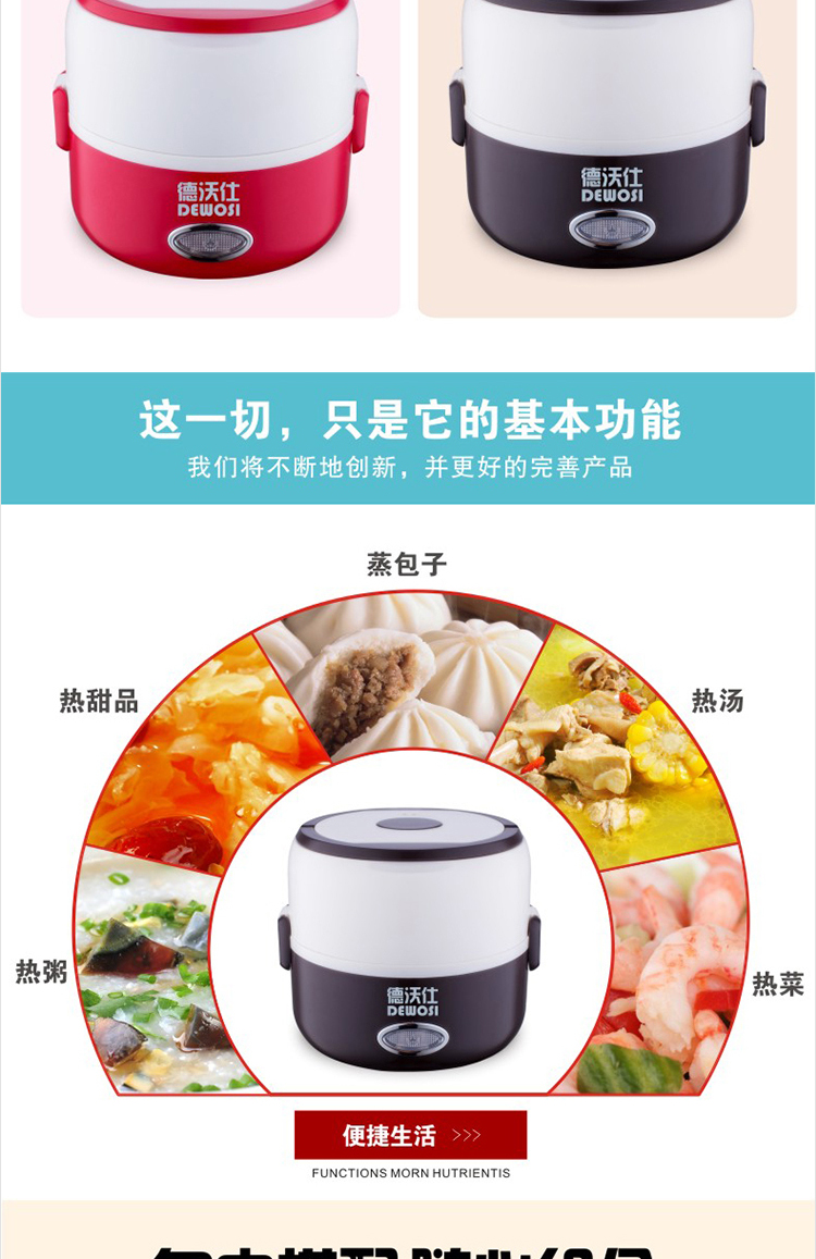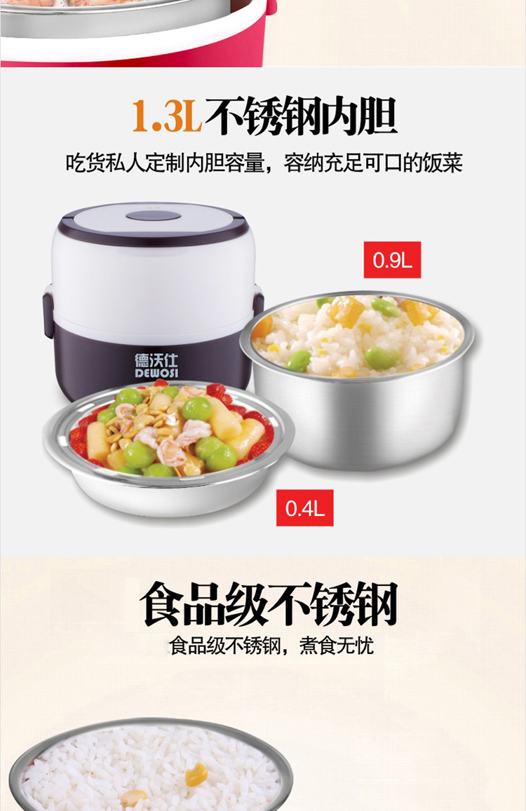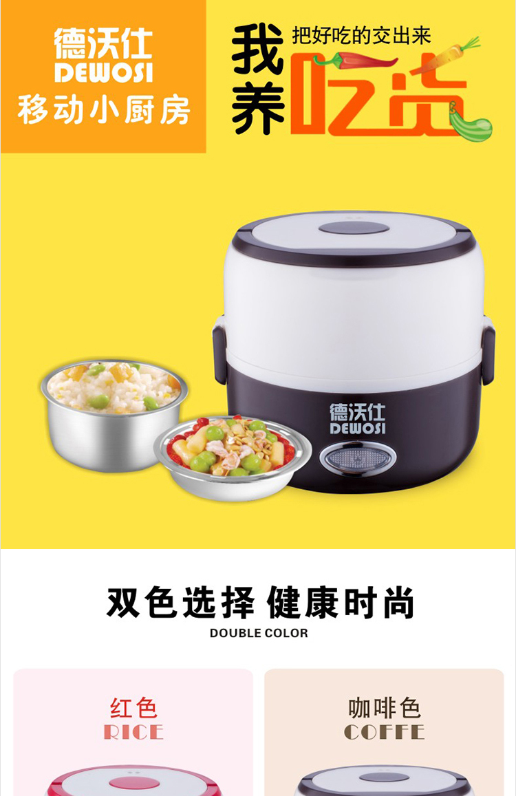 DEWOSI Double-layer Electric Lunch Box A2 1.3L-Red