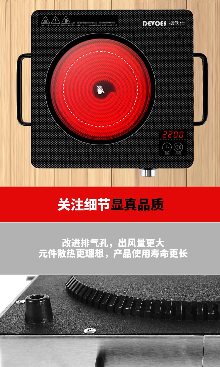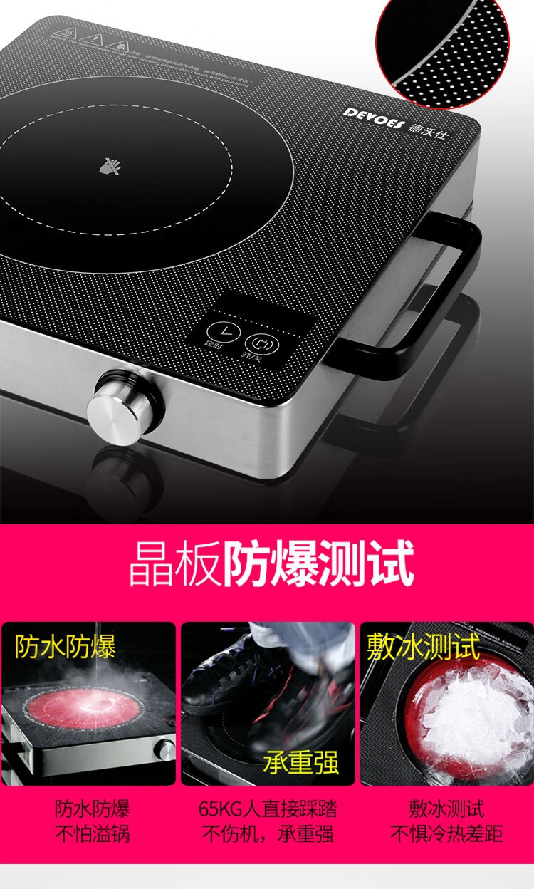 • 商品品牌:德沃仕(DEVOES) • 商品毛重:2.7kg • 商品产地:中国大陆 • 商品型号:DWS-891 • 操控方式:旋钮式 • 商品类别:单灶电陶炉 • 安装类型:台式 • 烧开2L水时间:0-5分钟 • 面板材质:微晶玻璃 • 商品功能:定时