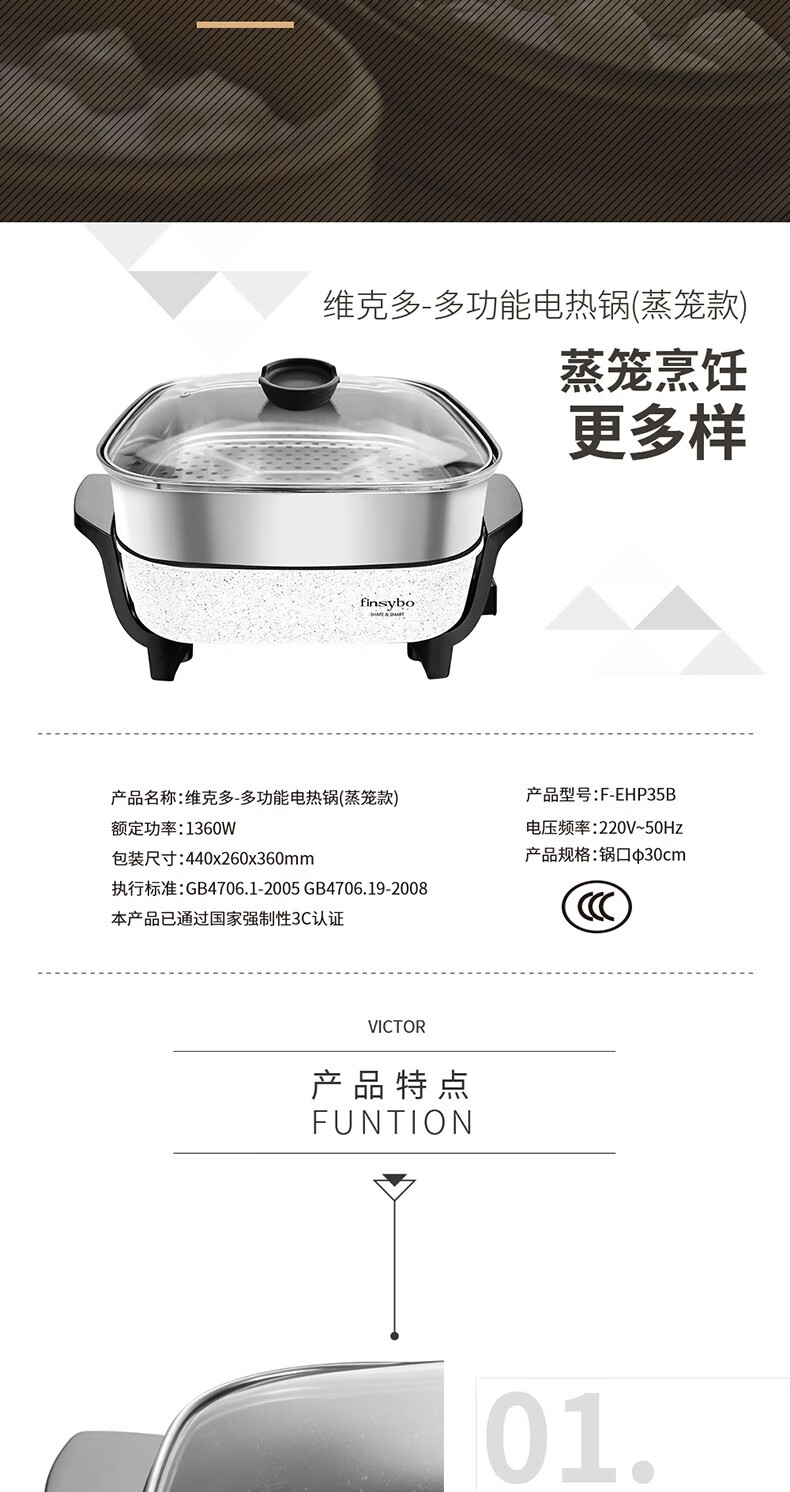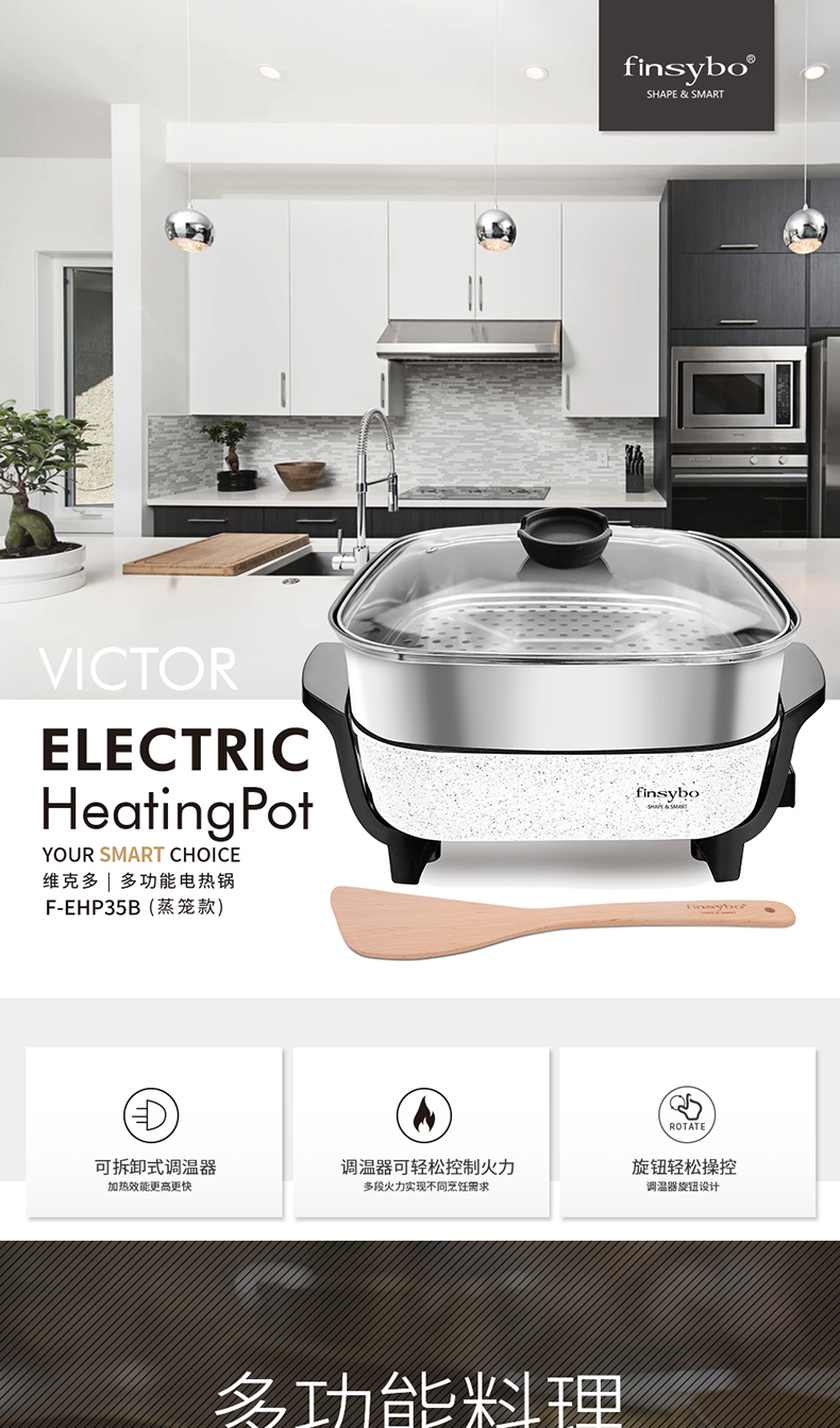 · 商品品牌:FINSYBO 英国阿诺尔 · 商品毛重:3.3kg · 商品 控制方式:旋钮式 · 商品类别:多功能电热锅特色 · 商品功能:定时