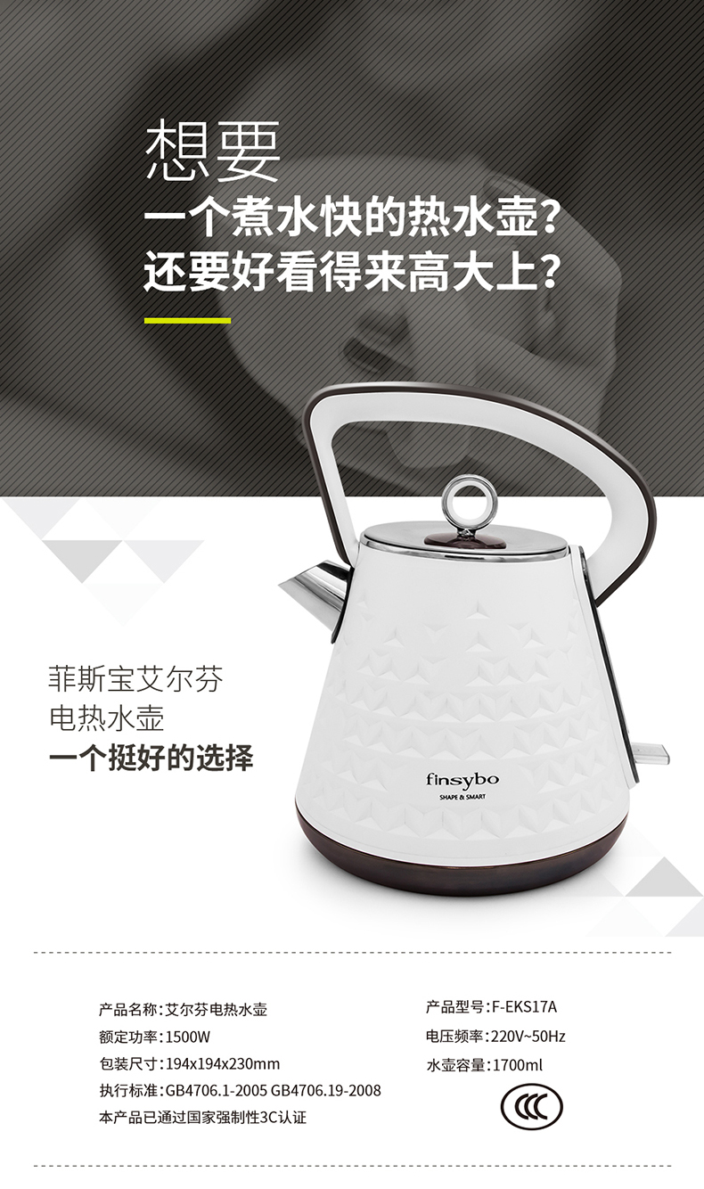 · 商品品牌:FINSYBO 英国阿诺尔 · 商品毛重:1.3kg · 商品型号:F-EKS17A · 商品产地:中国北京 · 商品容量:1.1-2L · 商品材质:304不锈钢