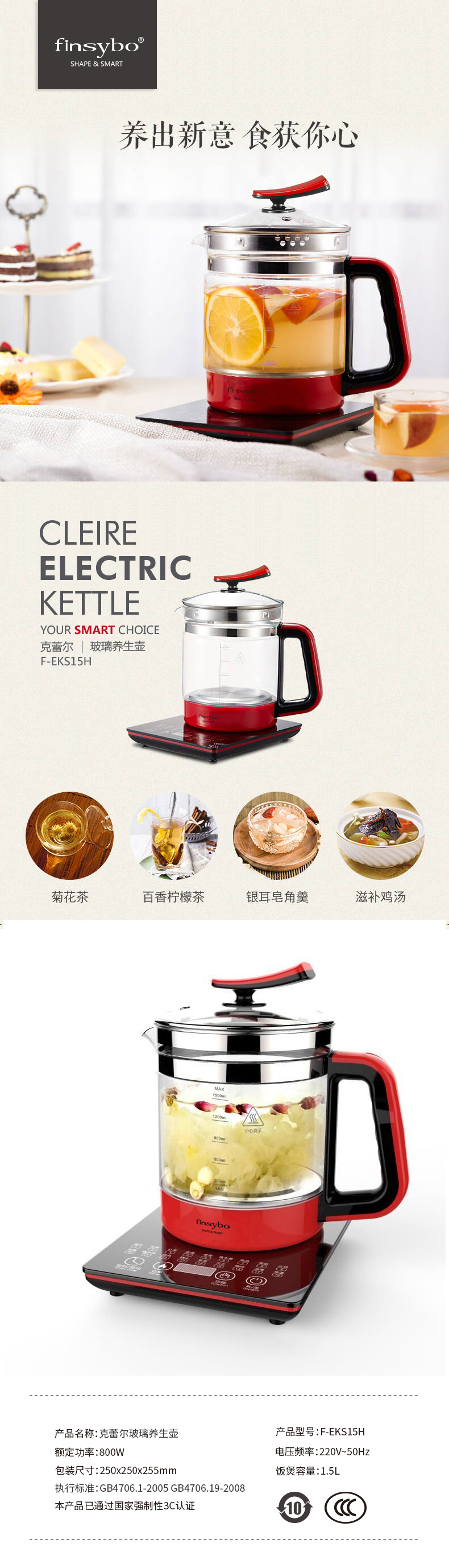 · 商品品牌:FINSYBO 英国阿诺尔 · 商品毛重:2.0kg · 商品型号:F-EKS15H · 额定功率:800W · 电压频率:220V~50Hz · 包装尺寸:250X250X255mm · 饭煲容量:1.5L