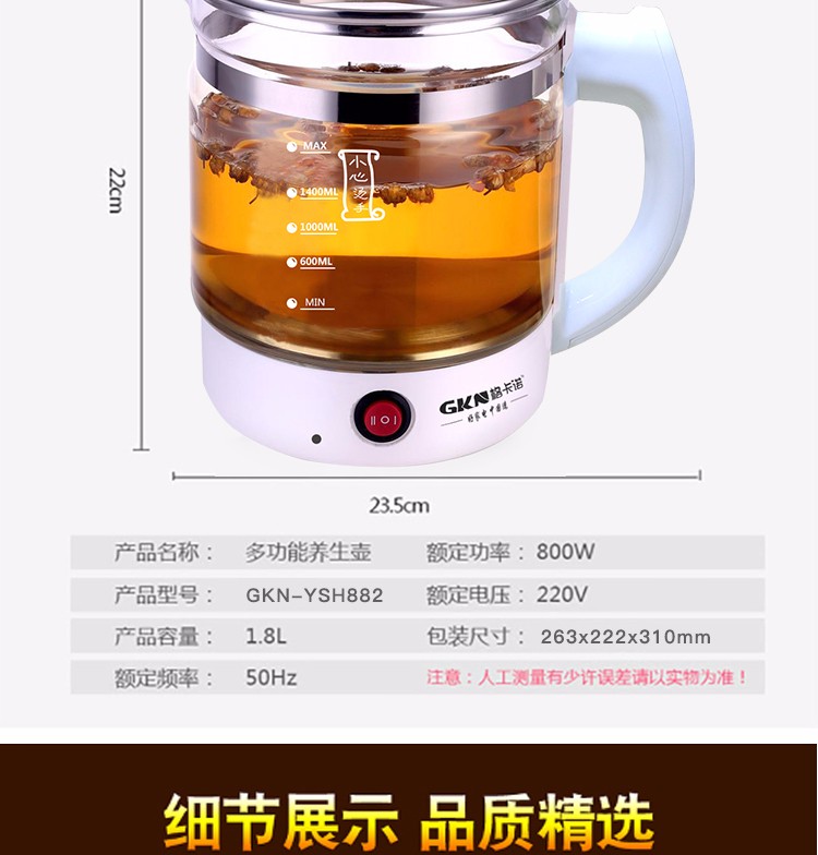 • 商品品牌: 格卡诺(GKN) • 商品型号:GKN-YSH882 • 商品毛重:3.0kg • 商品产地:中国大陆 • 操控方式:机械式 • 商品容量:1.8L-2L