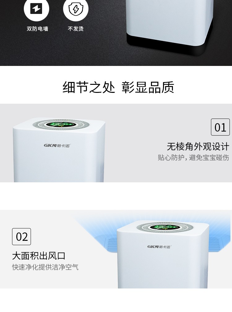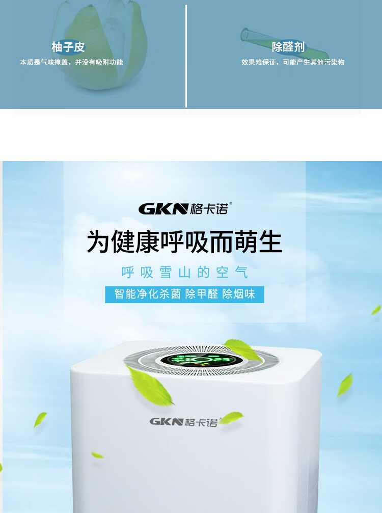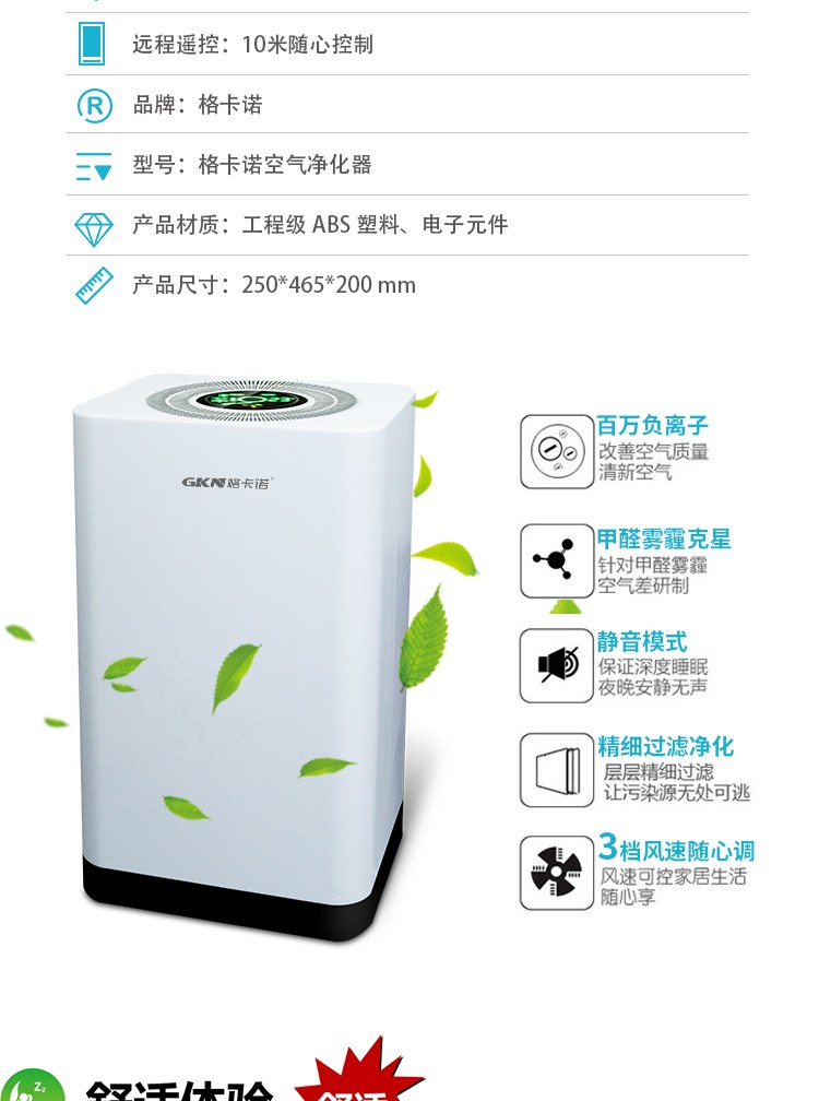• 商品品牌: 格卡诺(GKN) • 商品型号:GKN-KJ-D • 商品毛重:5.0kg • 商品产地:中国大陆 • 商品功能:除异味,除过敏原,除烟除尘,除花粉,指数显示 • 商品类别:家用型 • 适用人群:家装人群