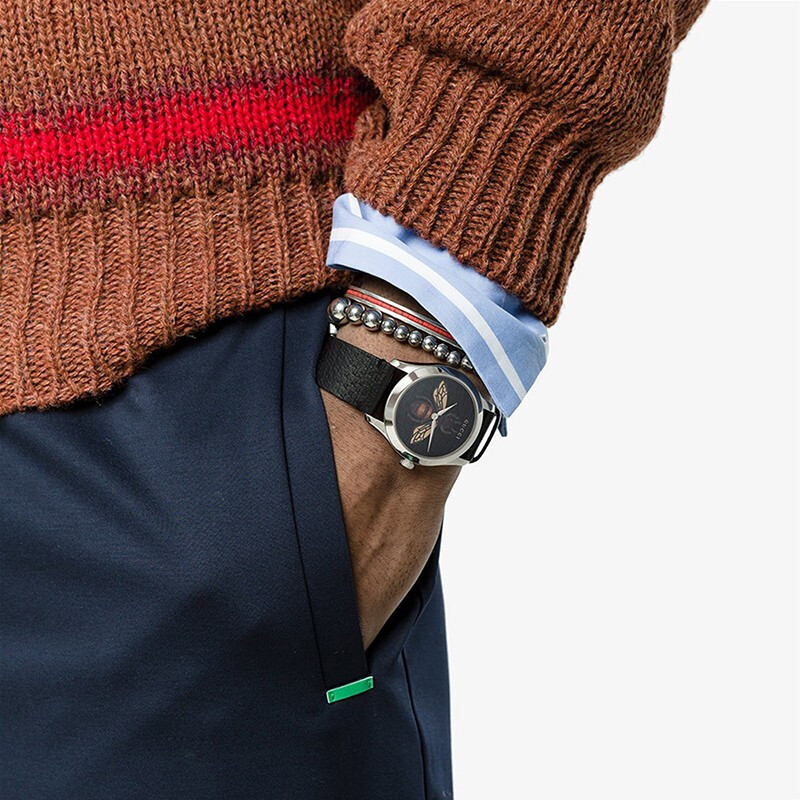 • 手表品牌:古驰(GUCCI) • 手表型号:YA1264067 • 手表系列: G-Timeless • 手表风格: 时尚 • 手表形状: 圆形 • 机芯类型: 石英机芯 • 表带材质: 皮革 • 表盘直径: 38mm • 表壳材质: 精钢 • 显示方式: 指针式 • 手表种类: 中性 • 表扣款式: 针扣 • 防水深度: 50m • 手表镜面材质: 人工合成蓝宝石表镜