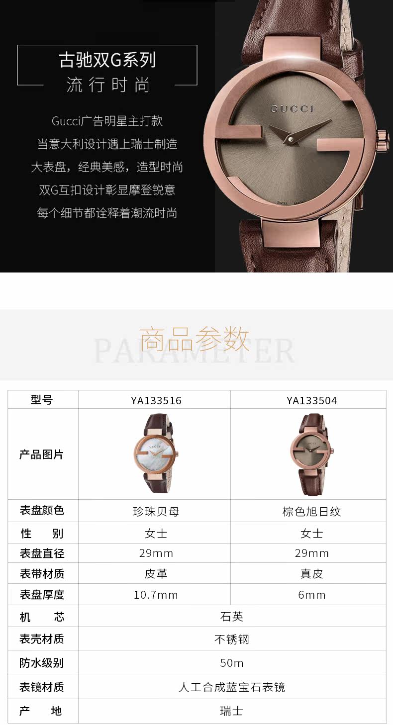 -Product Brand: GUCCI -Product Gross Weight: 1.0kg -Product Model: 01583C4A -Movement: Quartz -Suitable: Ladies -Strap: Other -Waterproof: Life Waterproof