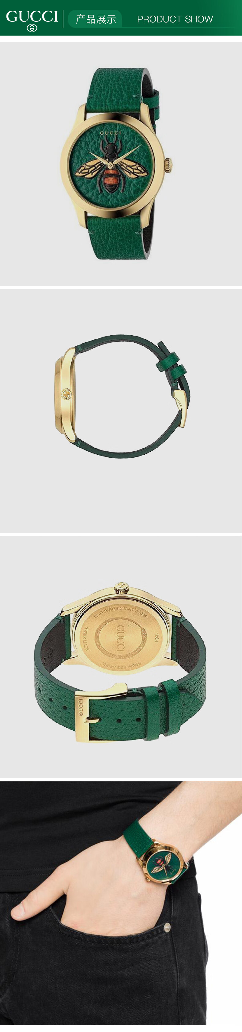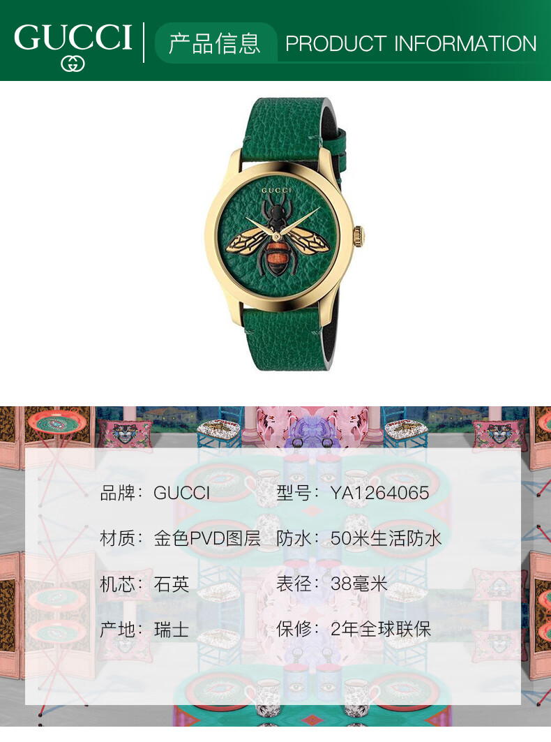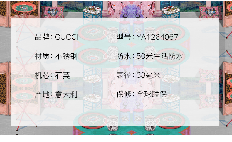 • 手表品牌:古驰(GUCCI) • 手表毛重:1.0kg • 手表型号:YA1264065 • 手表机芯:石英 • 适用人群:男士 • 手表表带:其它 • 防水等级:生活防水