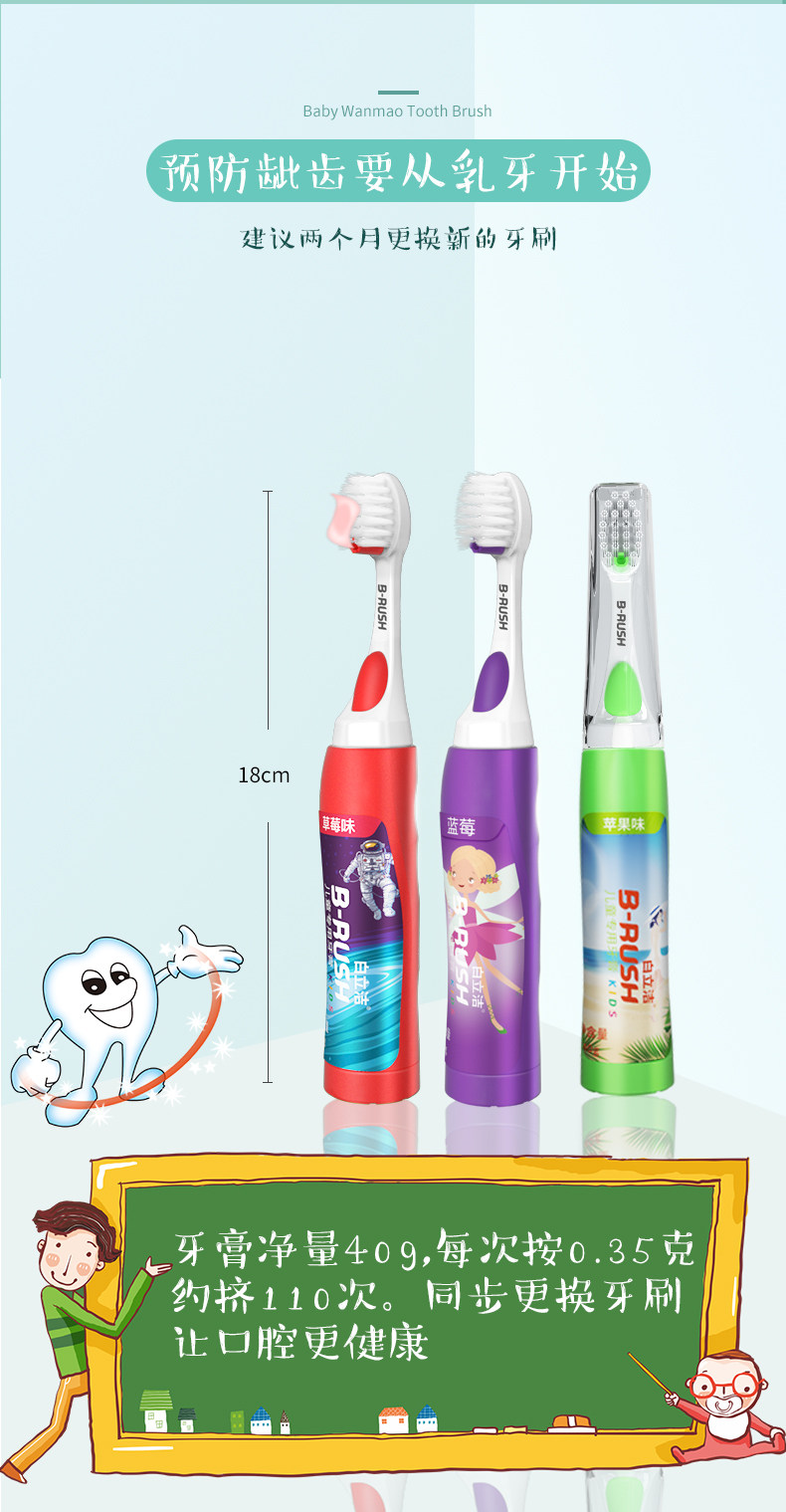 • 商品品牌: 白立洁 • 商品型号: B1-K10 • 商品功能: 清洁 舌苔清洁 • 商品产地: 中国大陆 • 颜色分类:(红色)草莓味 1支装 • 商品类别: 手动牙刷 • 商品规格: 1支 • 适用对象: 儿童