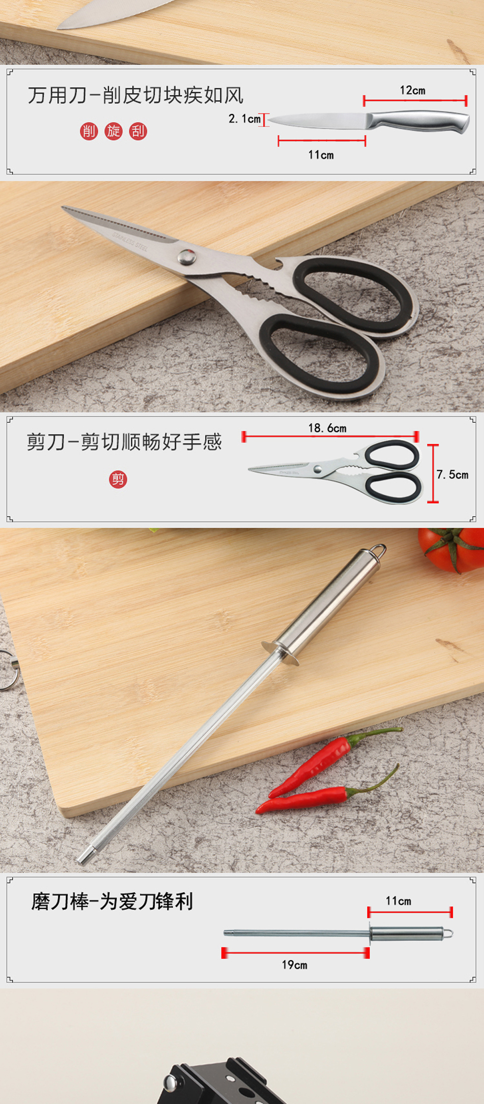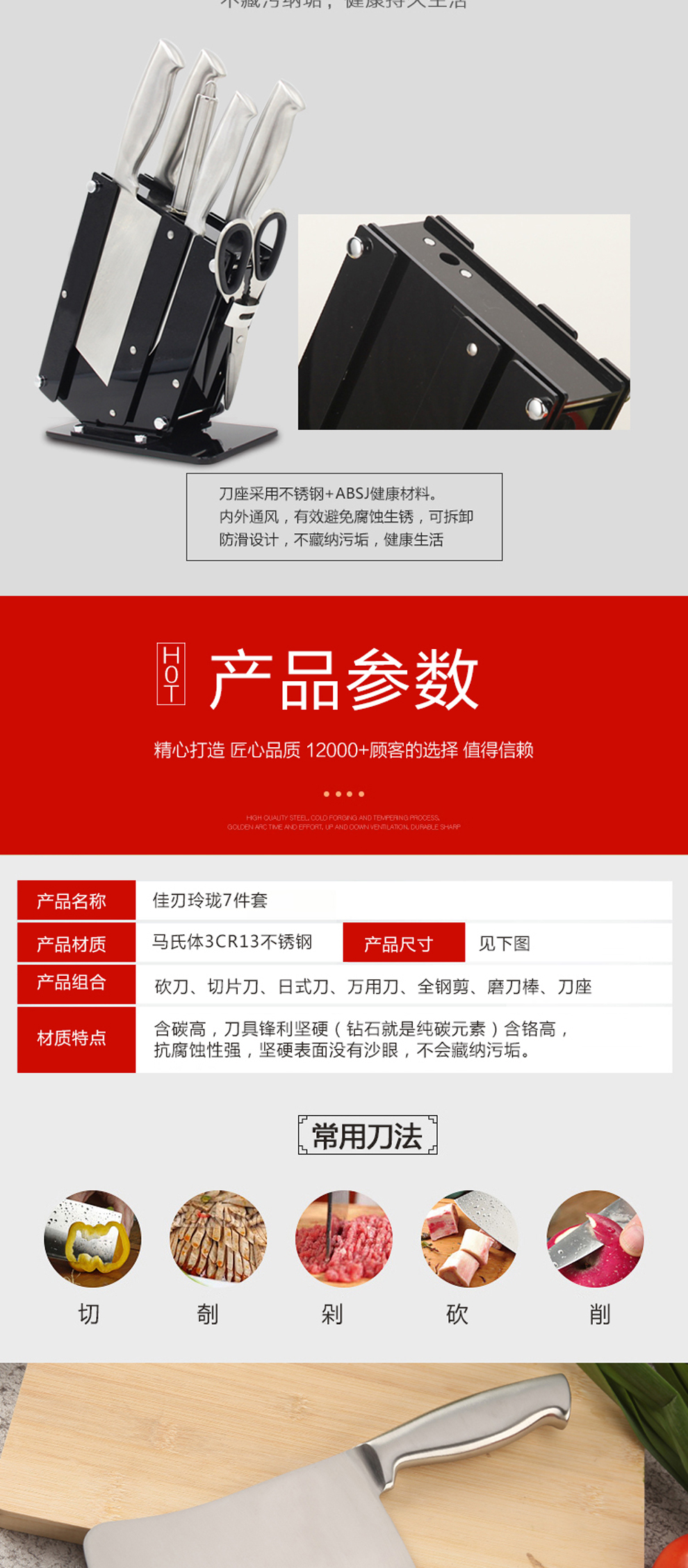 • 商品品牌: 佳刃 • 商品毛重:2.0kg • 商品材质:不锈钢 • 商品刃数:双刃 • 刀尖角度:>60° • 是否开刃:开刃 • 刀刃长度(mm):151-220mm