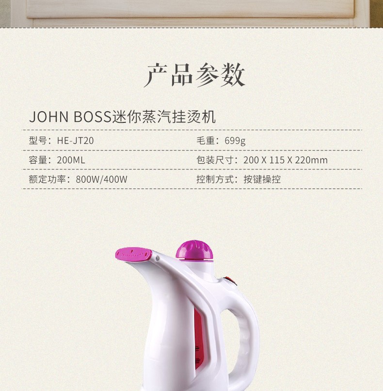 JOHN BOSS 迷你蒸汽挂烫机HE-JT20