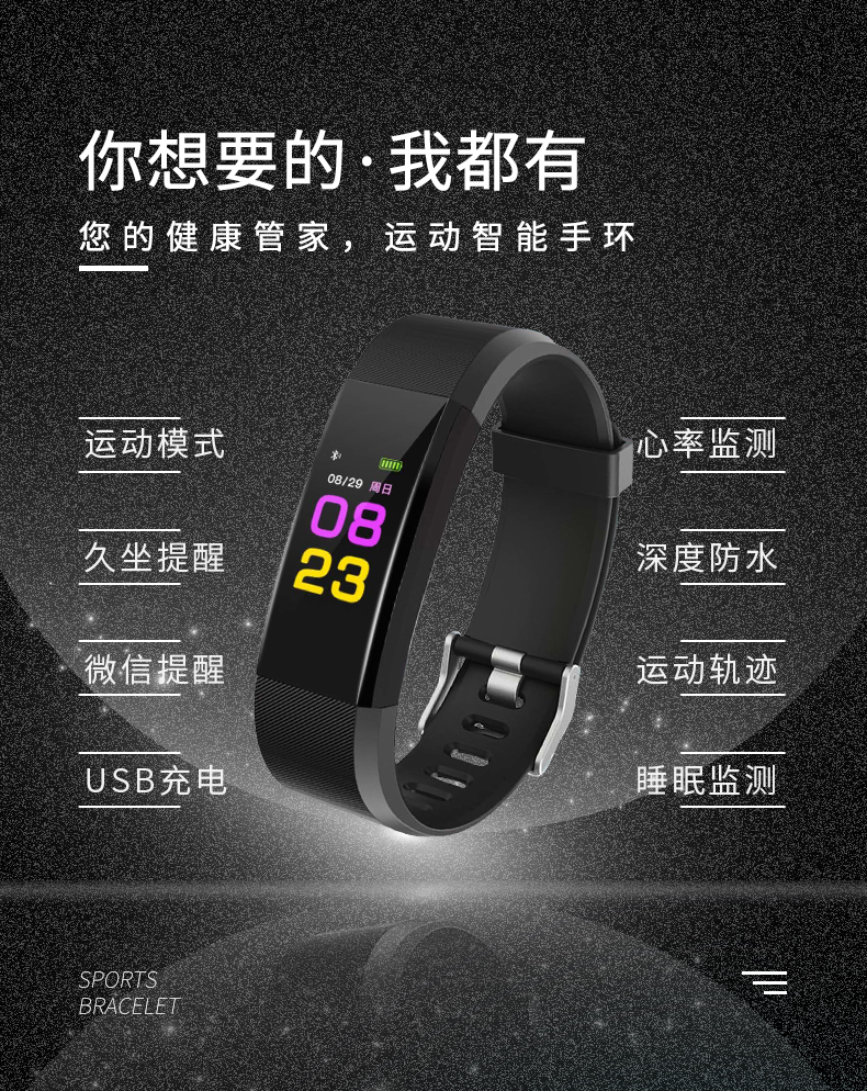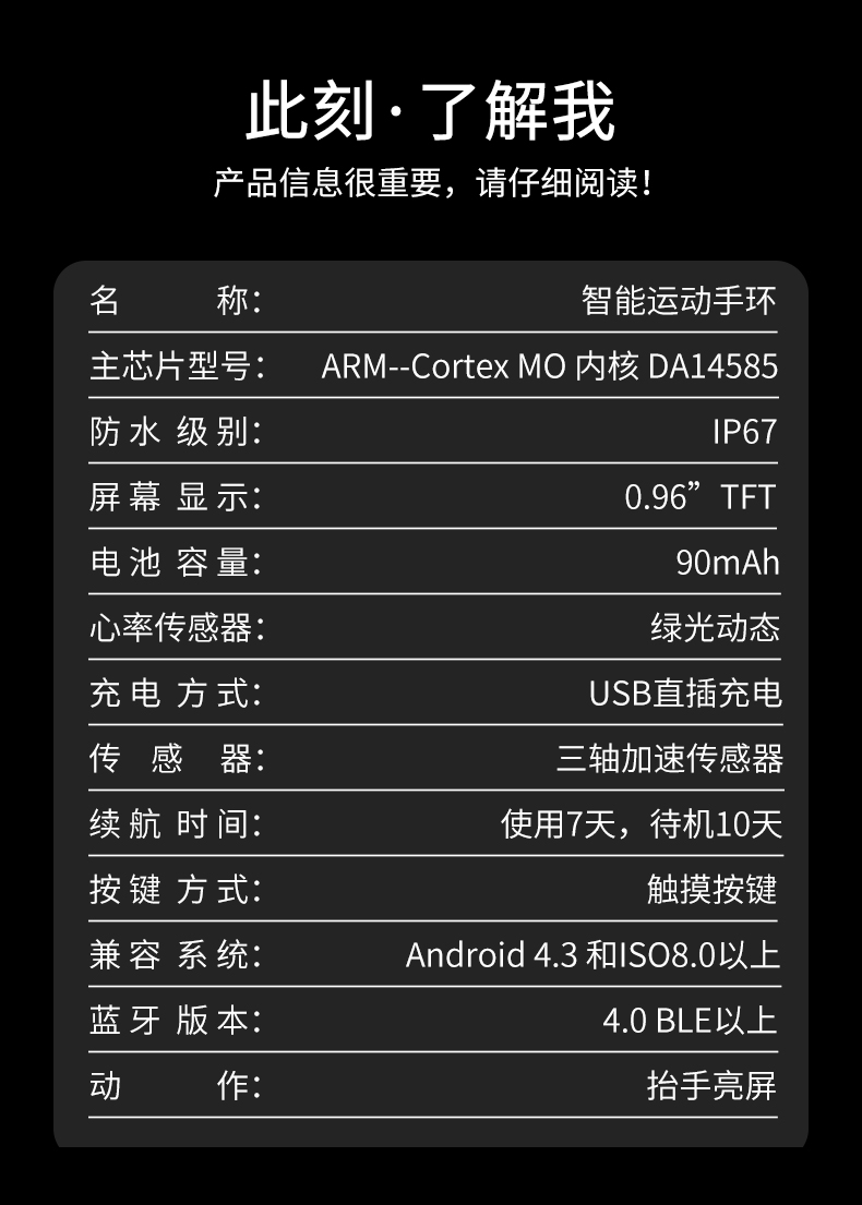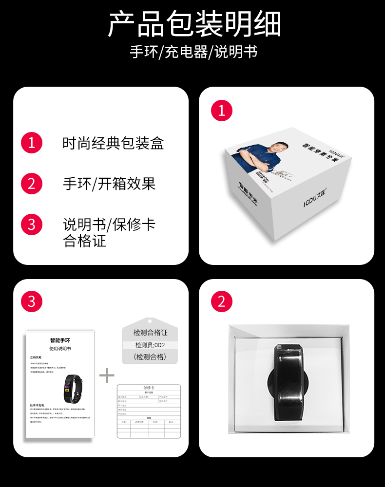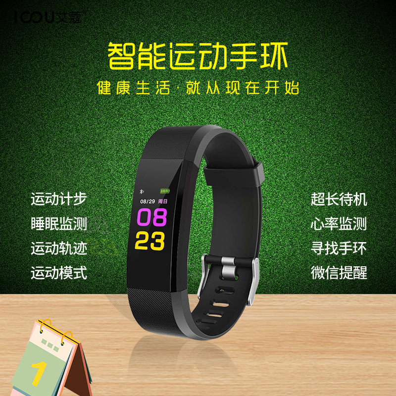 • 商品品牌: 艾蔻(ICOU) • 商品毛重:300.00g • 商品型号:K2 • 商品分类:其它 • 商品材质:塑料 • 屏幕显示:0.96”TFT • 电池容量:90mAh • 心率传感器:绿光动态 • 充电方式:USB直插充电 • 传感器:三軸加速传感器 • 续航时间:使用7天,待机10天 • 按键方式:触摸按键