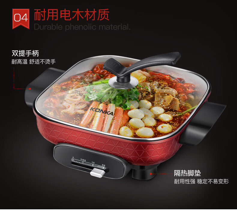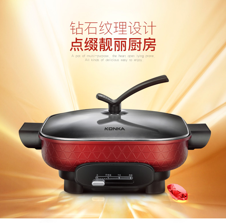 • 商品品牌: 康佳(KONKA) • 商品型号: KGJK-1626 • 商品毛重:1.5kg • 操控方式:机械式 • 商品类别:电火锅 • 商品容量:2.1L-4L • 特色功能:定时,保温,防干烧,断电水洗