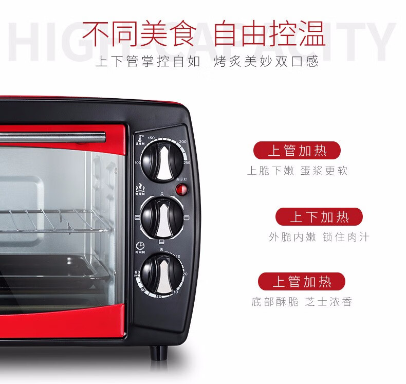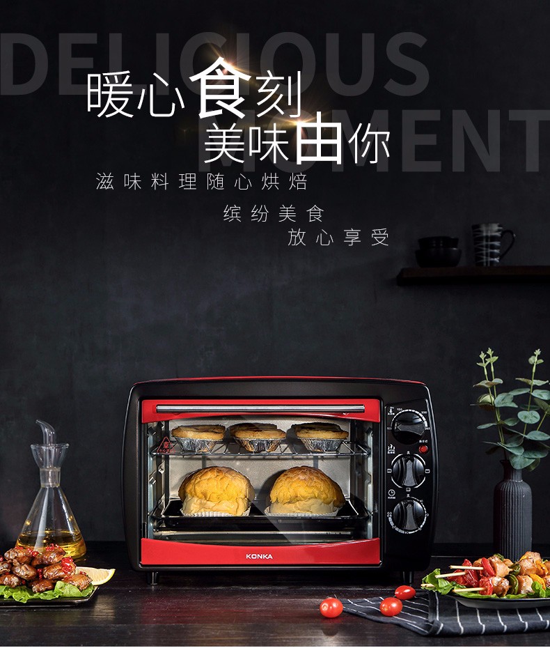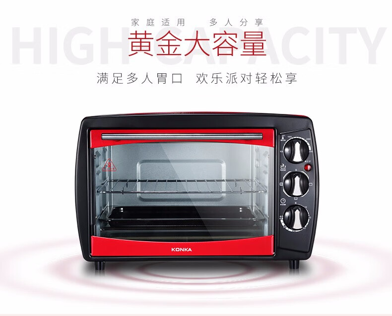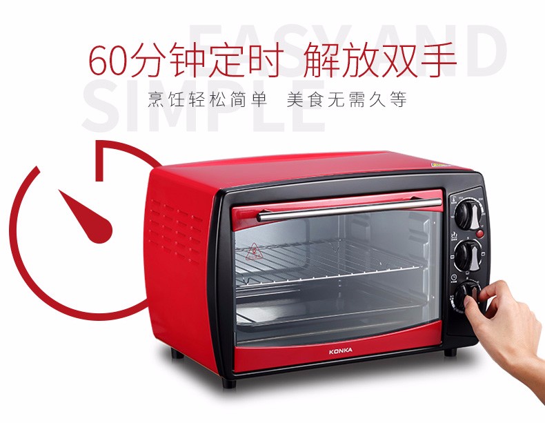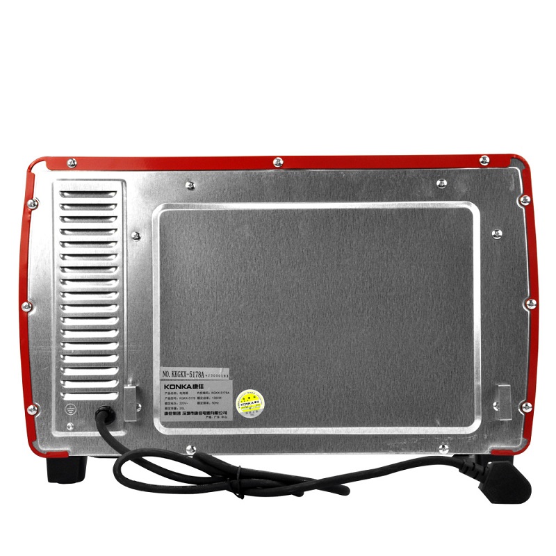 • 商品品牌: 康佳(KONKA) • 商品型号: KGKX-5178A • 商品毛重:6.3kg • 操控方式:手动机械 • 商品类别:烤箱 • 加热管数量:3根以下 • 外观式样:立式 • 适用人数:3-5人 • 内胆材质:镀锌板 • 温控方式:上下独立调温