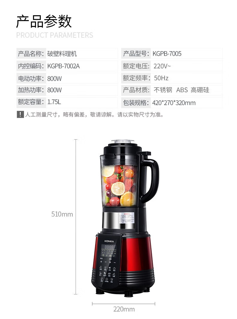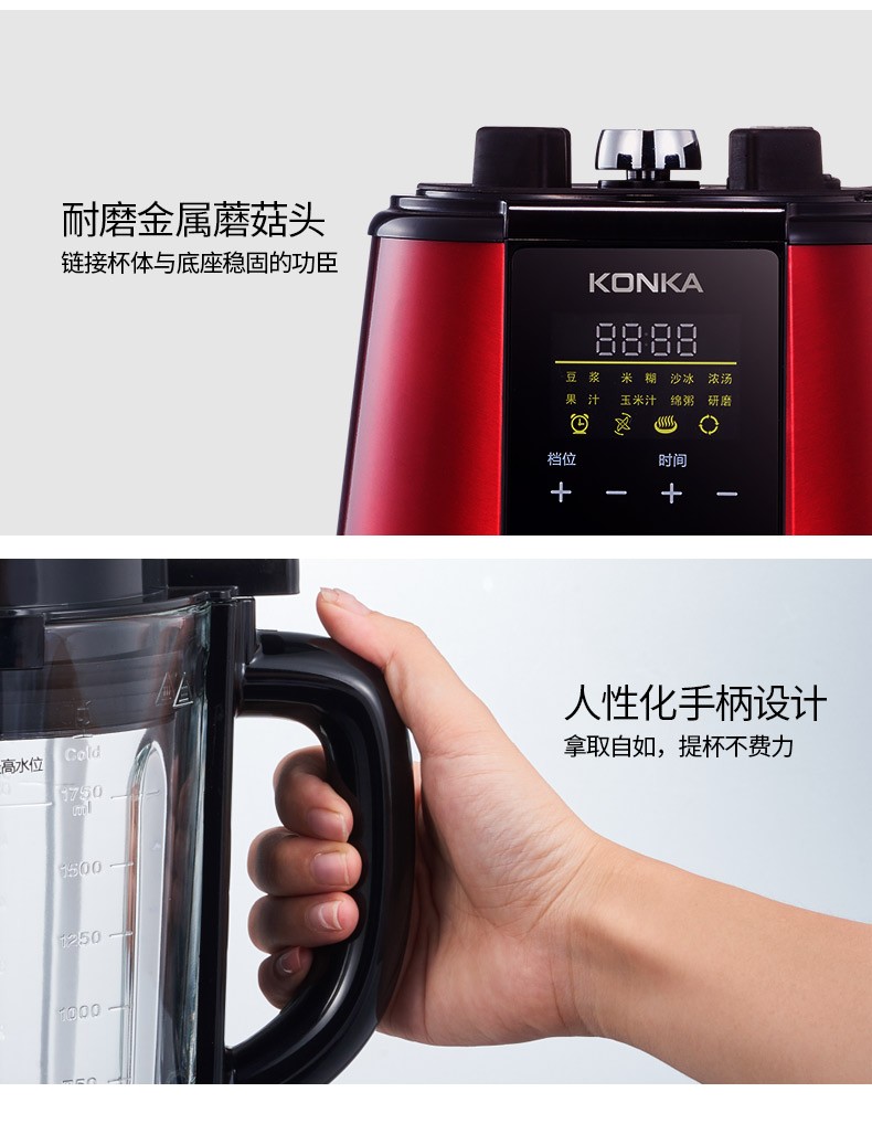 • 商品品牌: 康佳(KONKA) • 商品型号: KGPB-7002A • 商品毛重:6.21kg • 特色功能:预约,加热,研磨 • 商品功率:700W-900W • 主杯容量(L):1.51L-1.7L
