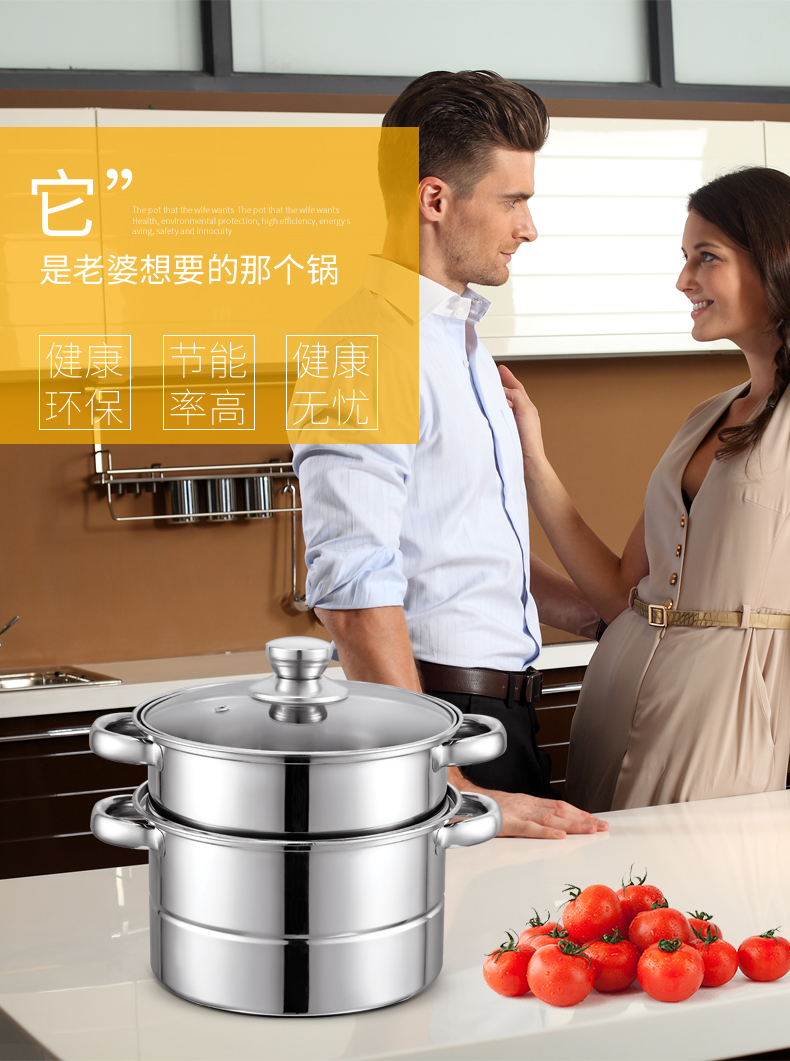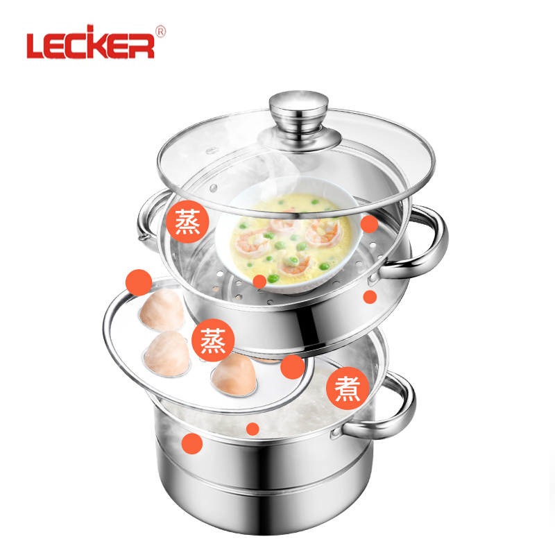 LECKER Breakfast Two-layer Stainless Steel Steamer Gas Induction Cooker Universal 27*9*27cm-KR-507