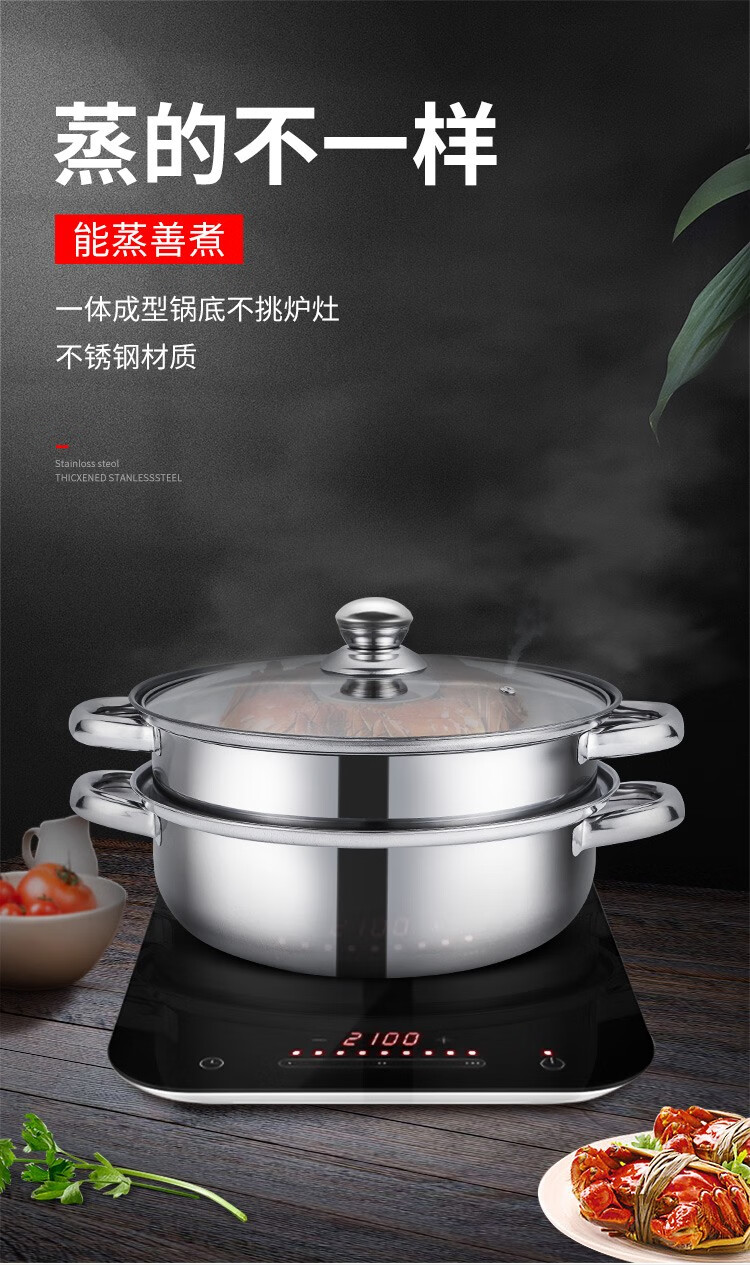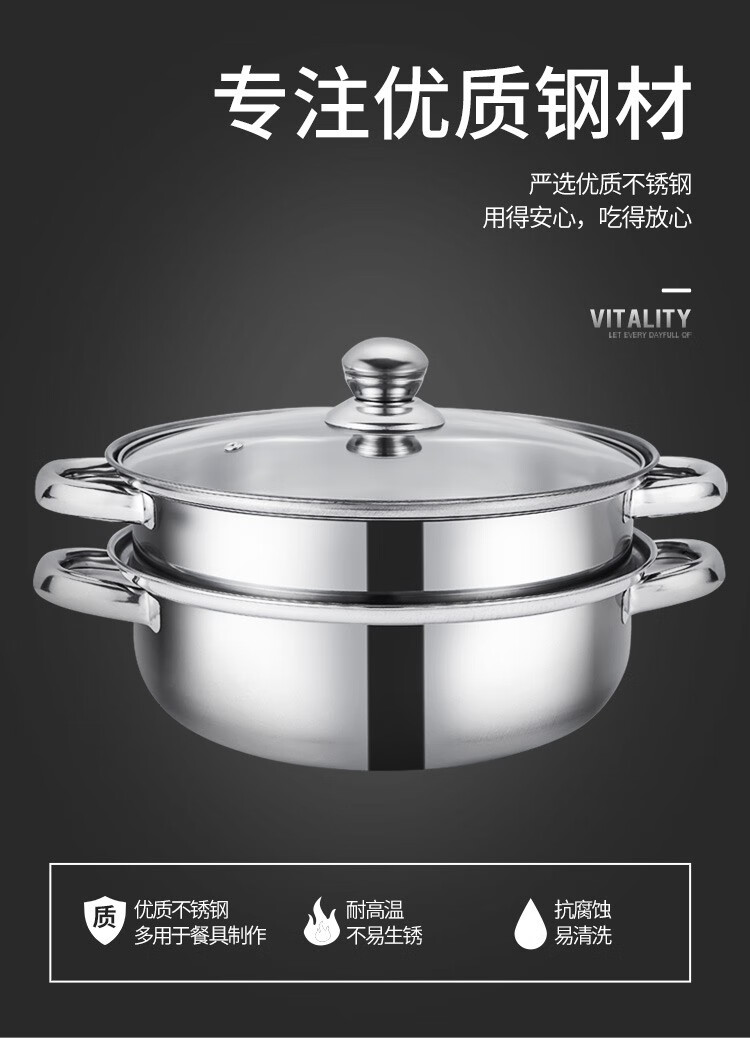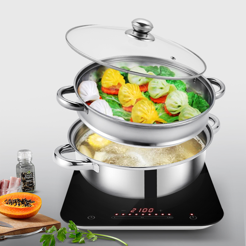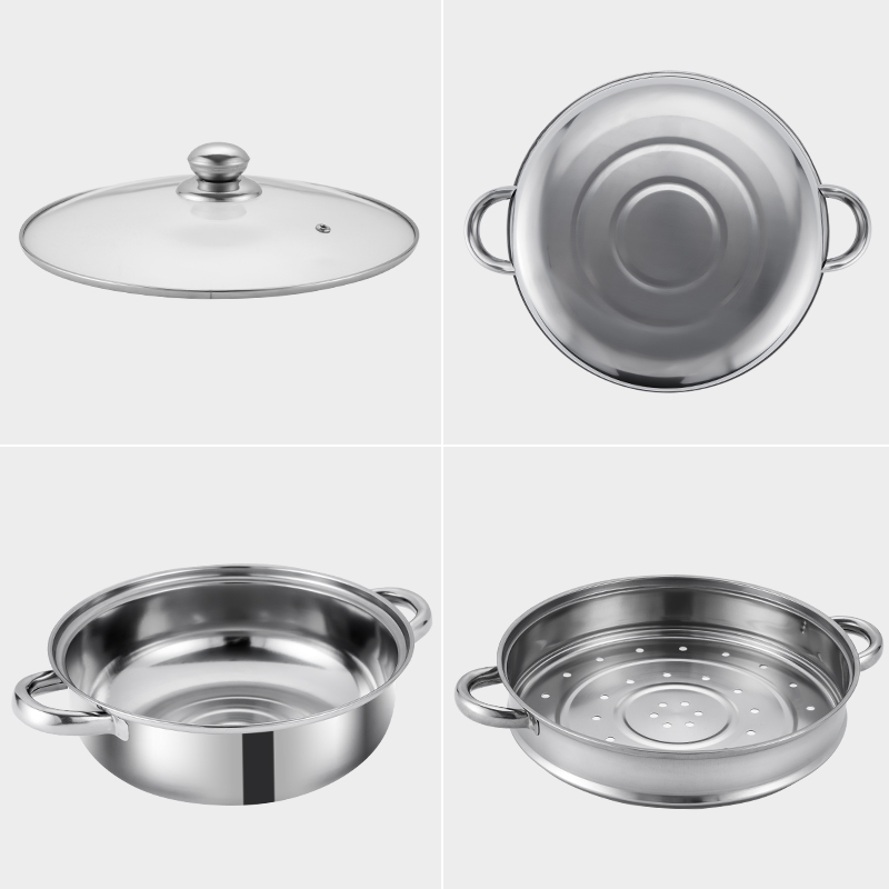 LECKER Steamer Stainless Steel Multi-function Double-layer Soup Pot 28cm KR-516