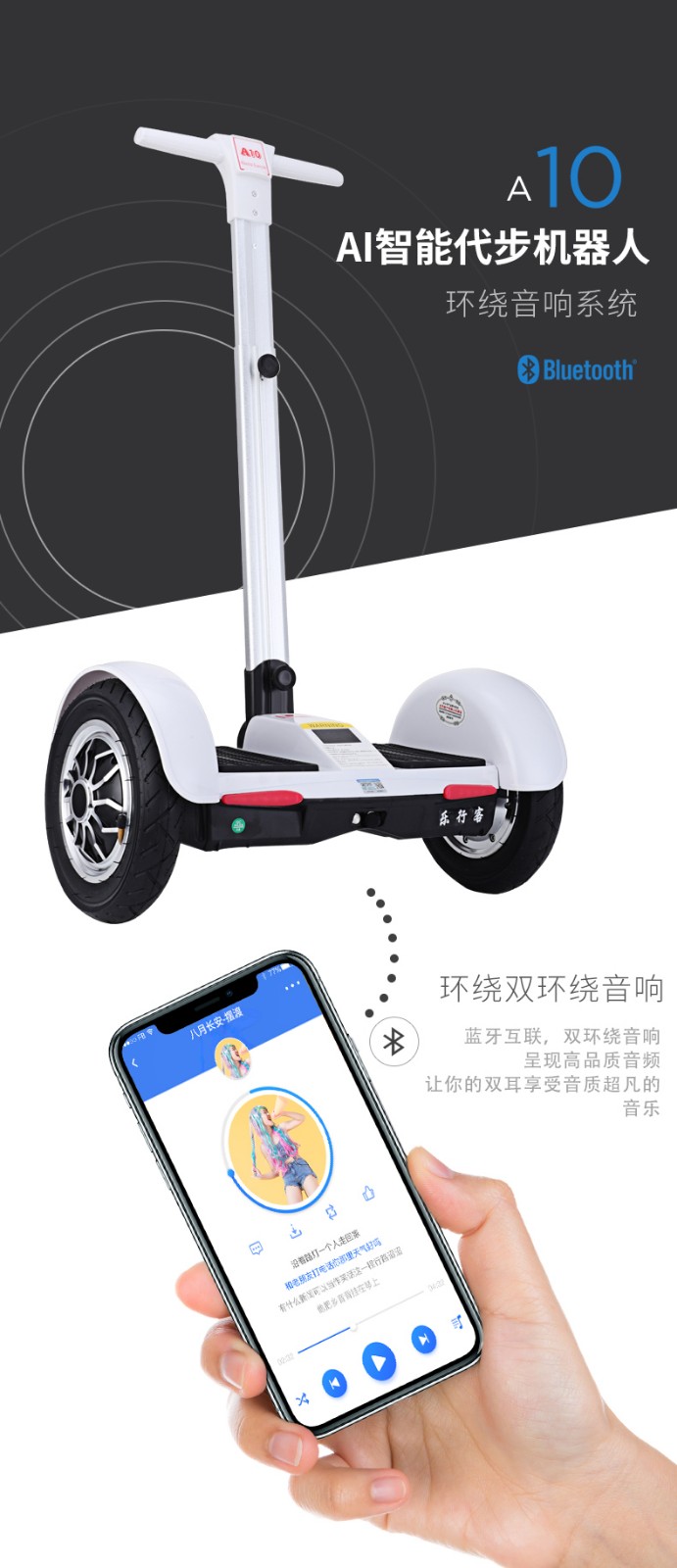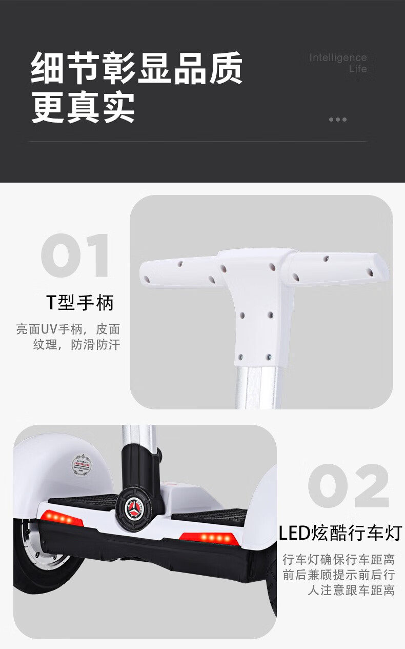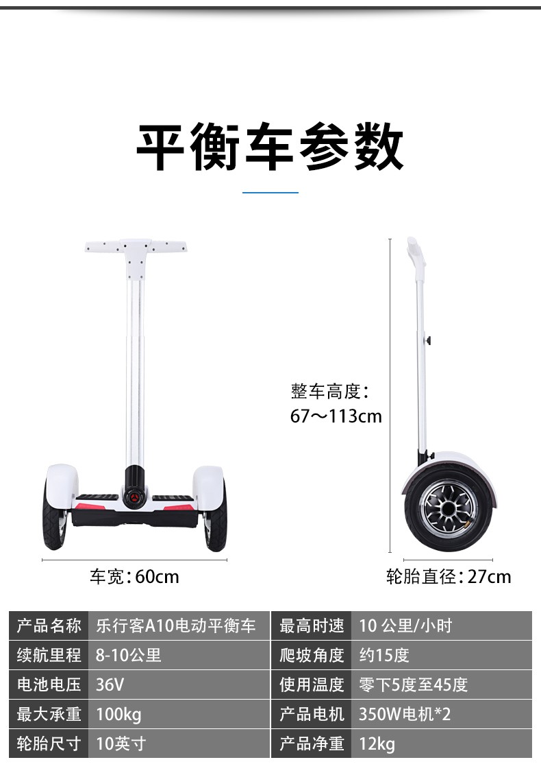 LEXINGKE乐行客 智能遥控锁电动双轮平衡车双核CPU代步车A10 -白色