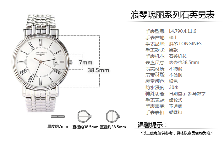 • Series model L4.790.4.11.6 • Shape : Round • Material : Stainless Steel • Glass : Scratch-resistant Sapphire Crystal • Water Resistance : Water-resistant to 3 Bar • Colour : White Matt • Hour Markers : Painted Roman Numerals • Hand : Black Hands • Movement Type : Quartz • Functions : Hours, Minutes, Seconds And Date • Buckle : With Triple Safety Folding Clasp And Push-piece Opening Mechanism