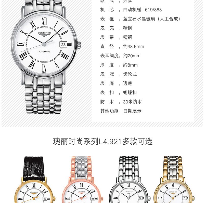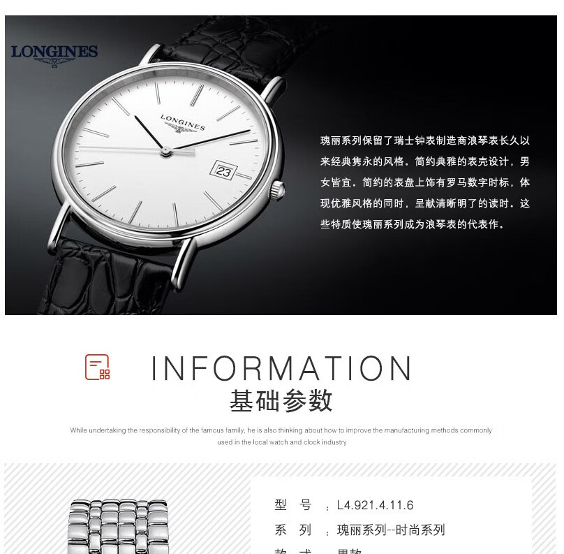 LONGINES Watches : Presence Series Men's Watch L4.790.4.11.6