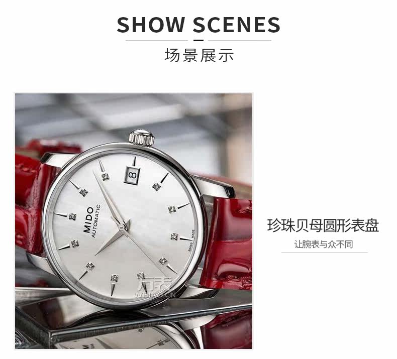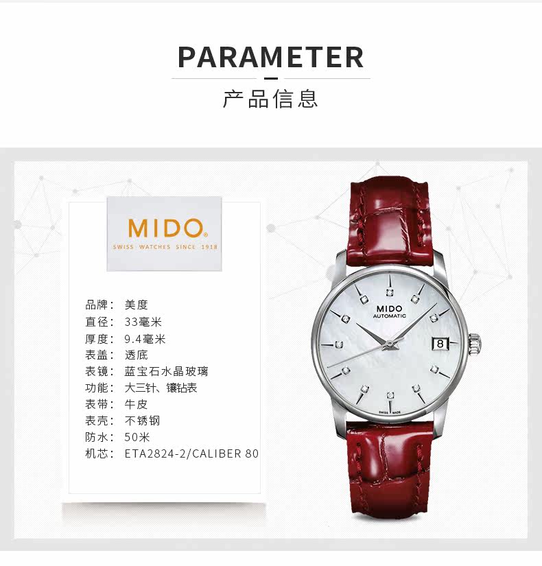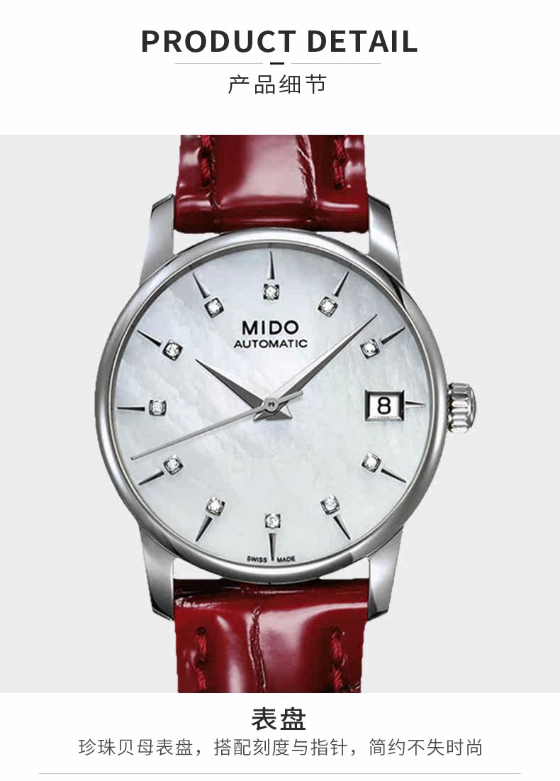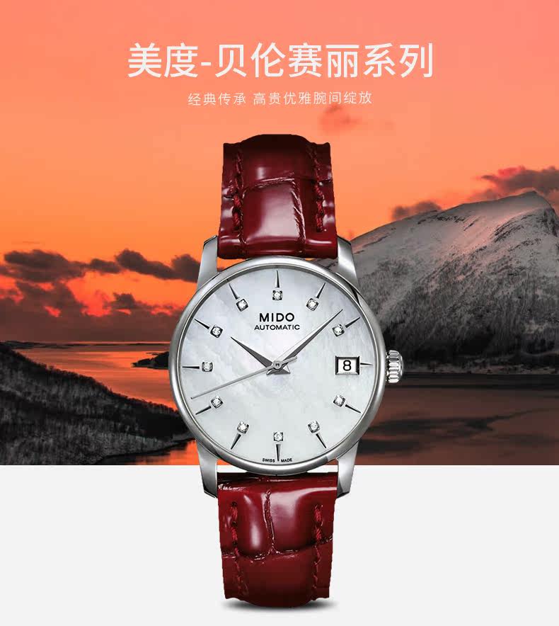 美度(MIDO)BARONCELLI贝伦赛丽系列珍珠贝母瑞士机械女表 M007.207.16.106.00